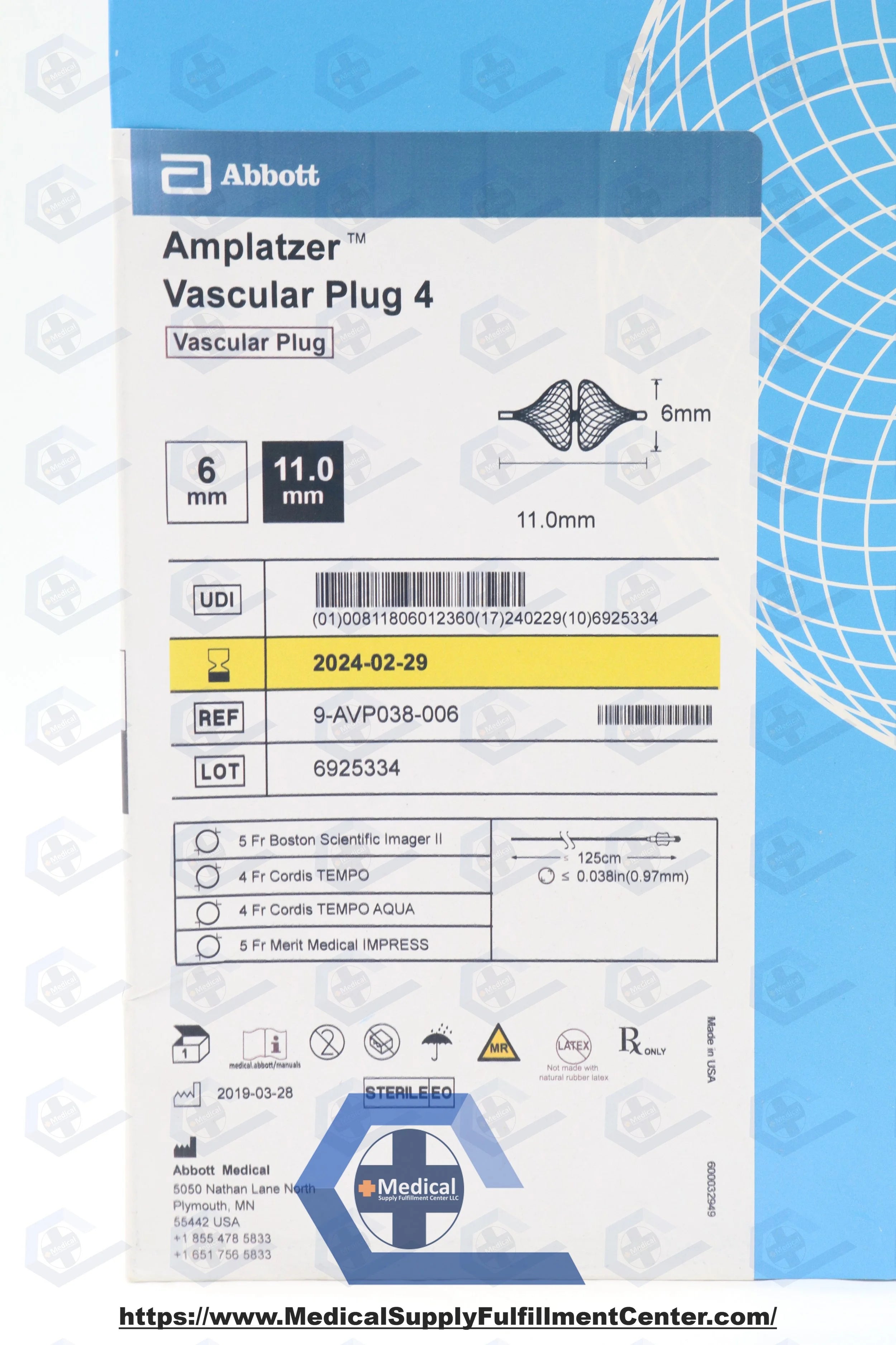 ABBOTT | 9-AVP038-006 | EXPIRED | EACHES | Amplatzer Vascular Plug 4: 6mm x 11mm