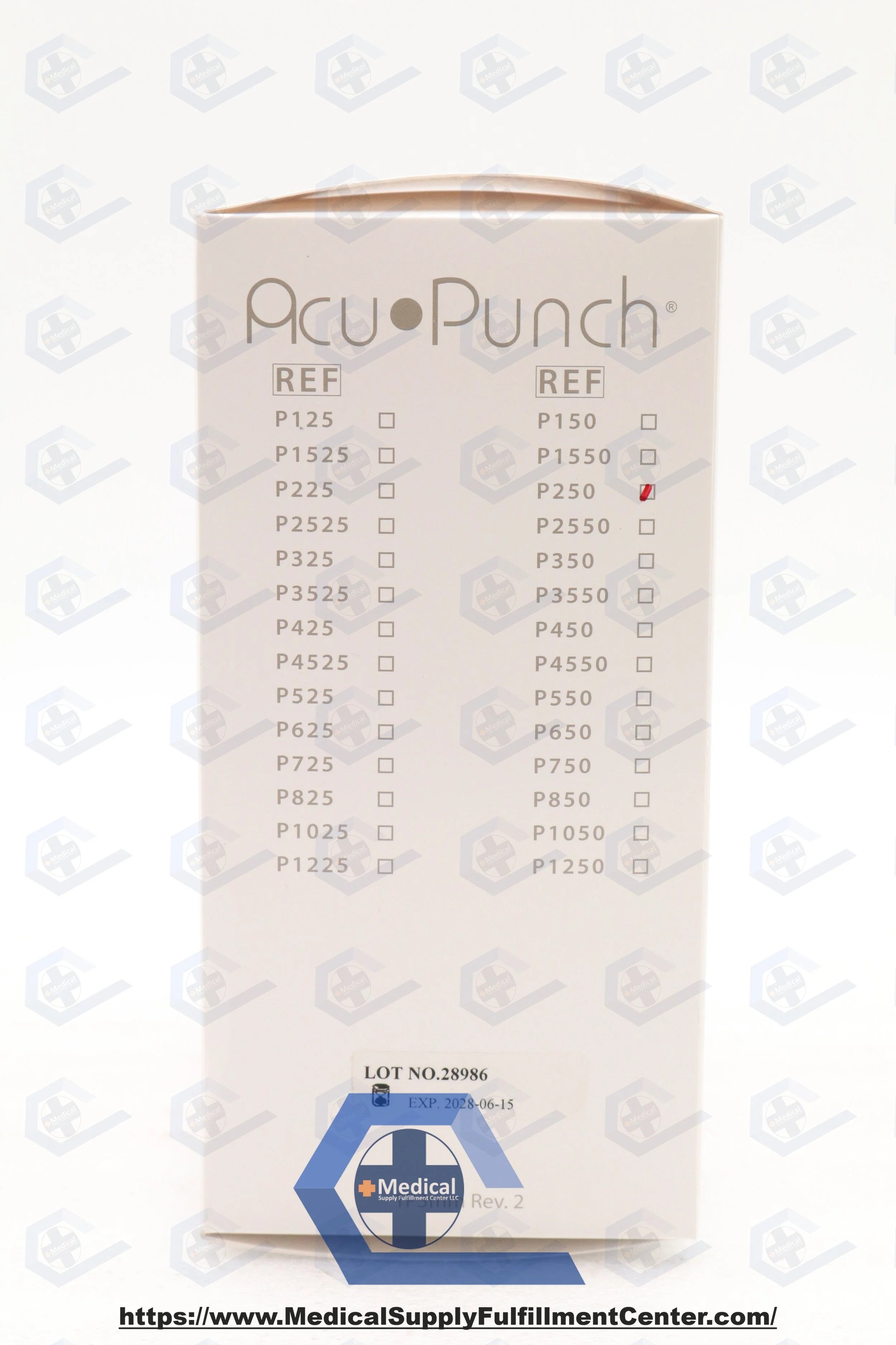 Acuderm | P250 | BOX OF 50 | Acu-Punch Small and Medium Size Punches - Biopsy Punch, Disposable, Sterile, Size S / M, 2 mm