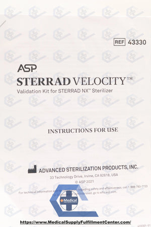 ASP | 43330 | NO DATE | SET OF 4 | STERRAD VELOCITY Validation Kit for STERRAD NX Sterilizer containing REFs 13830 99205 99210