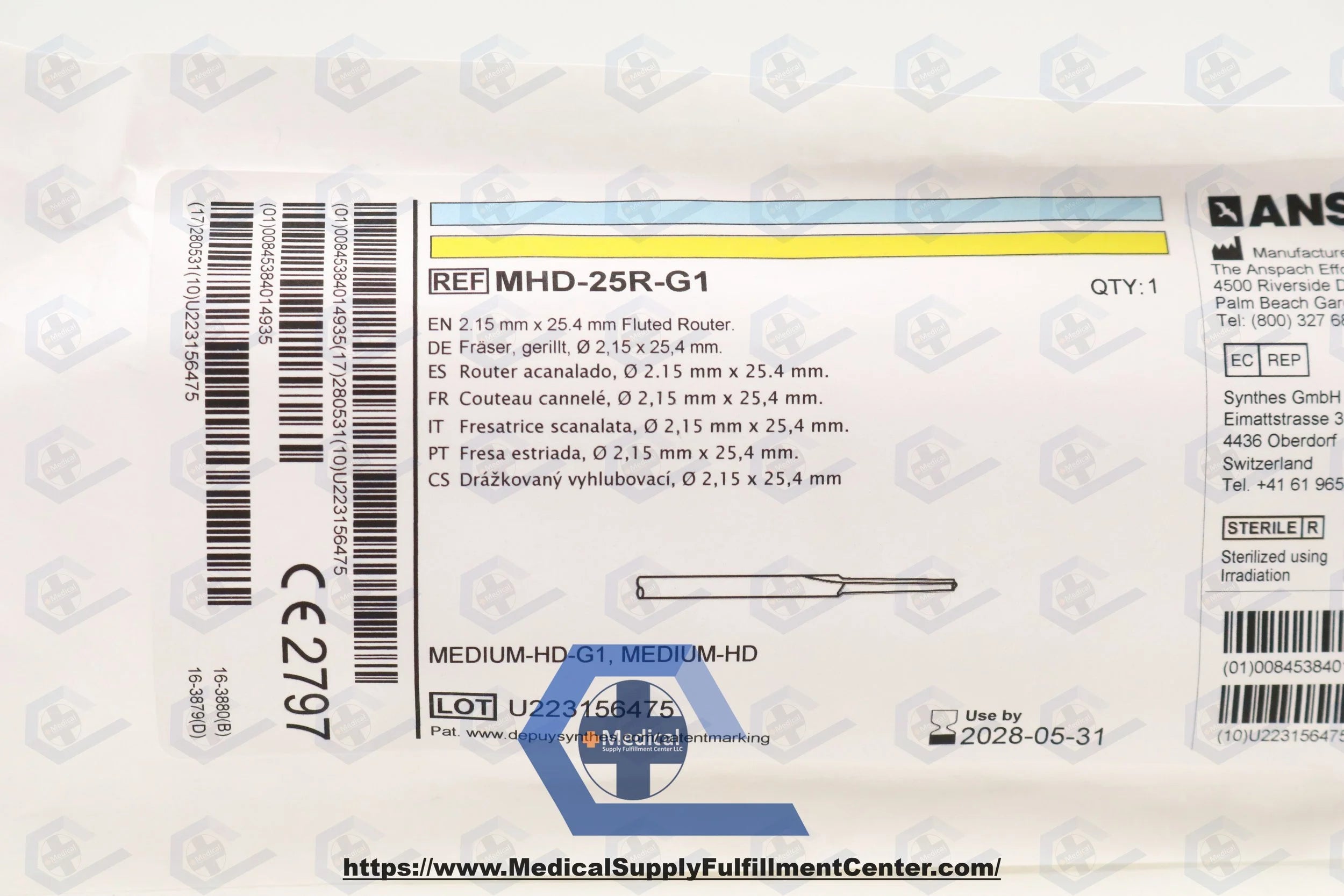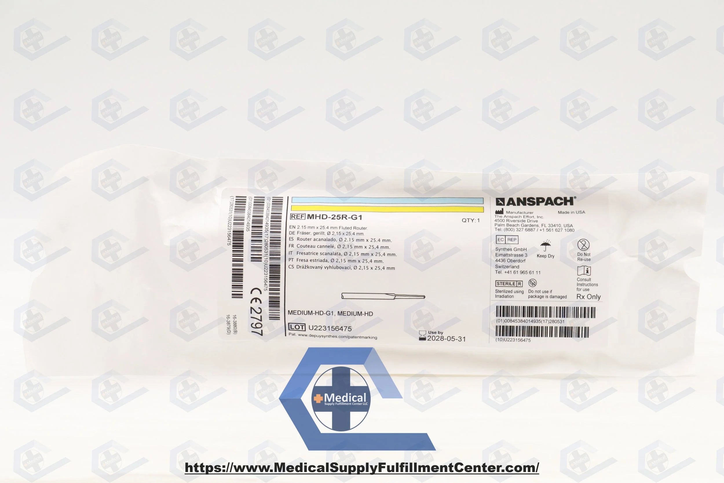 ANSPACH | MHD-25R-G1 | IN-DATE | EACHES | Cutting Burr, 2.15 dia. x 25.4 mm Length, Fluted Edge FormFor Medium-HD 8 cm