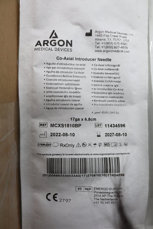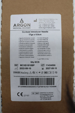 Argon Medical Devices MCXS1810BP Co-Axial Introducer Needle 17ga x 6.8cm Box of 5
