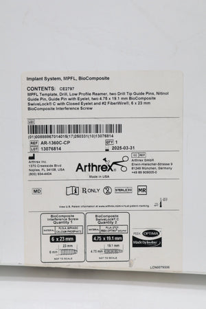 Arthrex | AR-1360C-CP | SHORTDATE | EACHES | Biocomposite MPFL Implant System CE2797