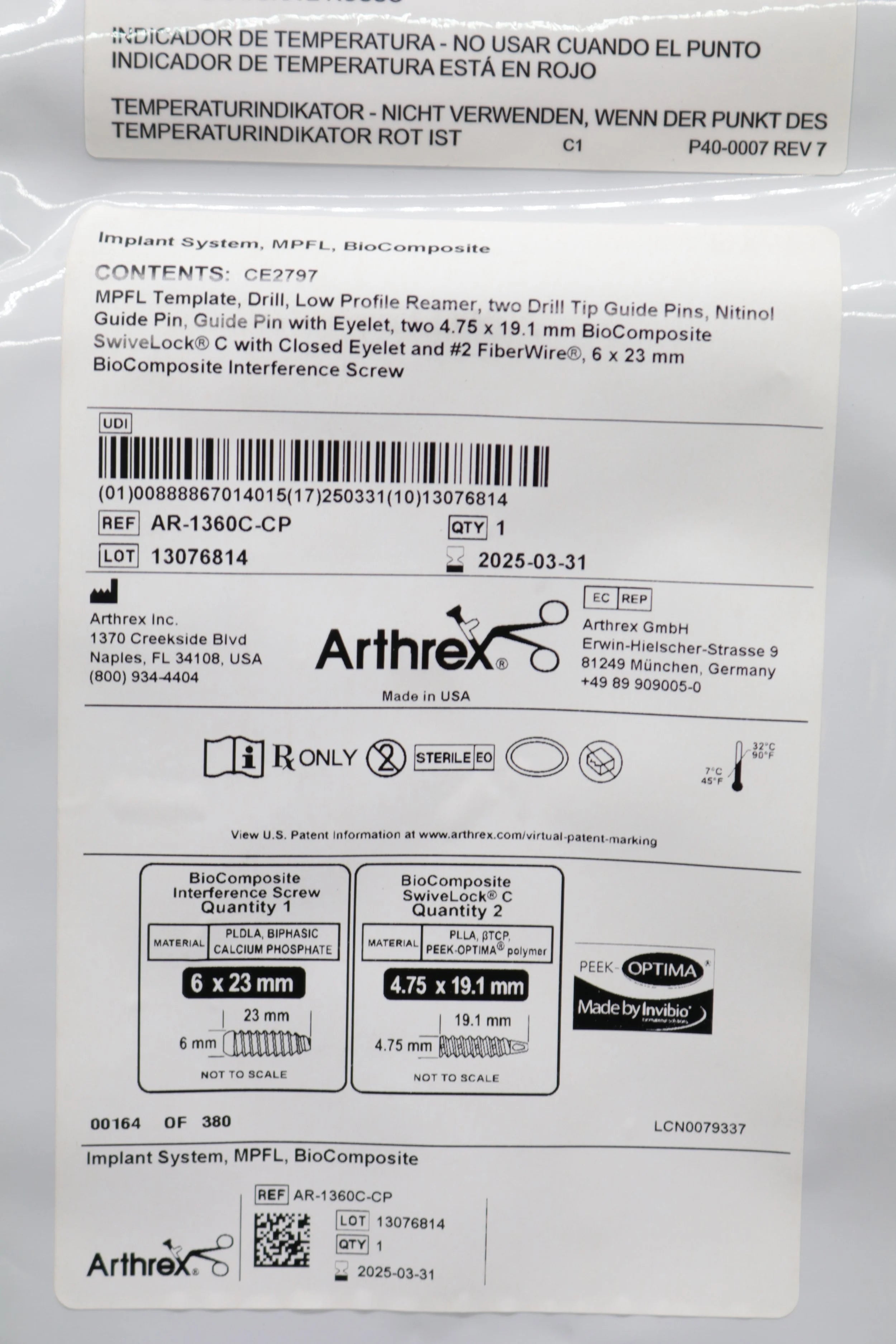 Arthrex | AR-1360C-CP | Biocomposite MPFL Implant System CE2797