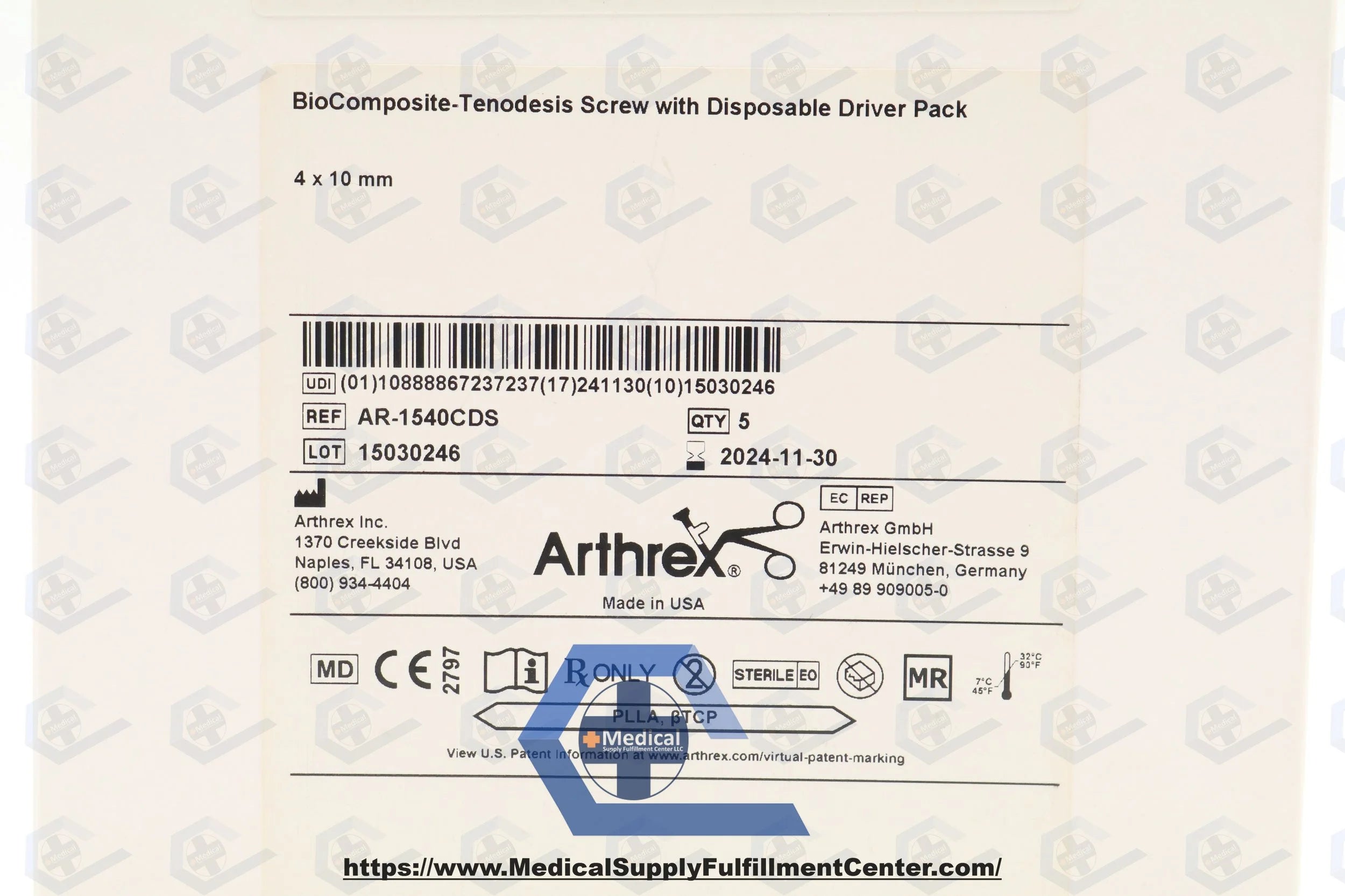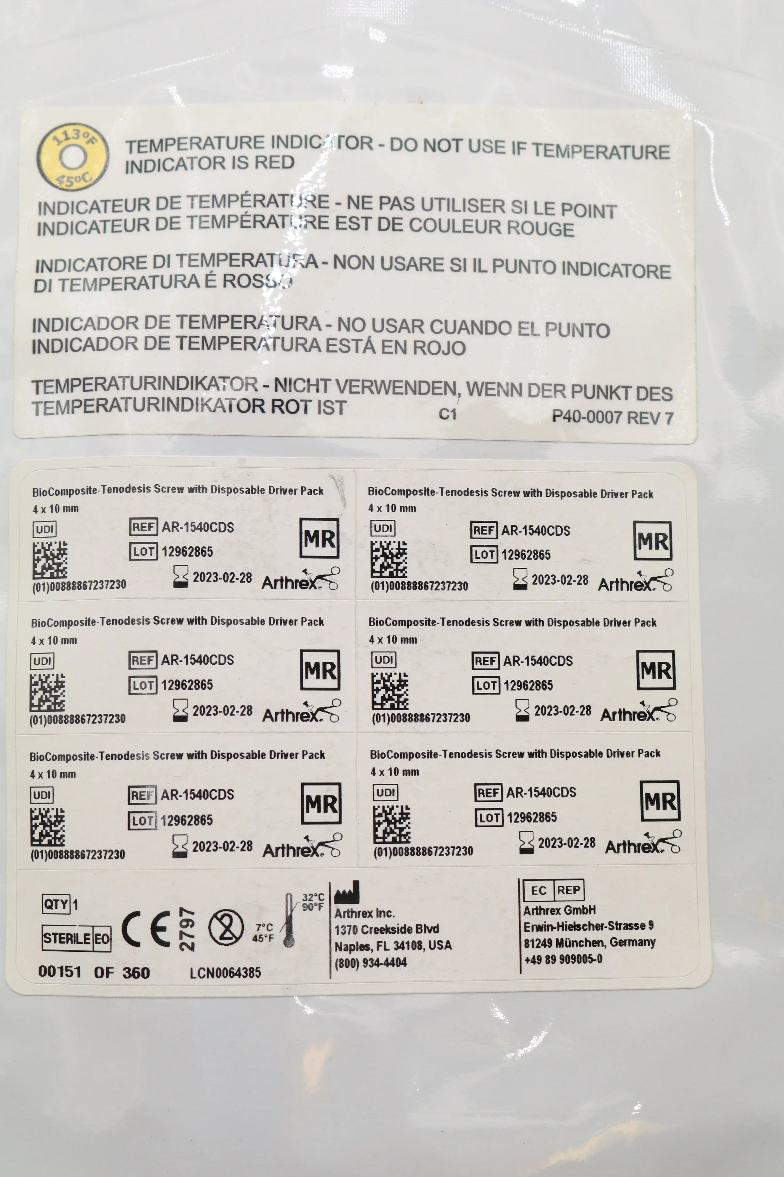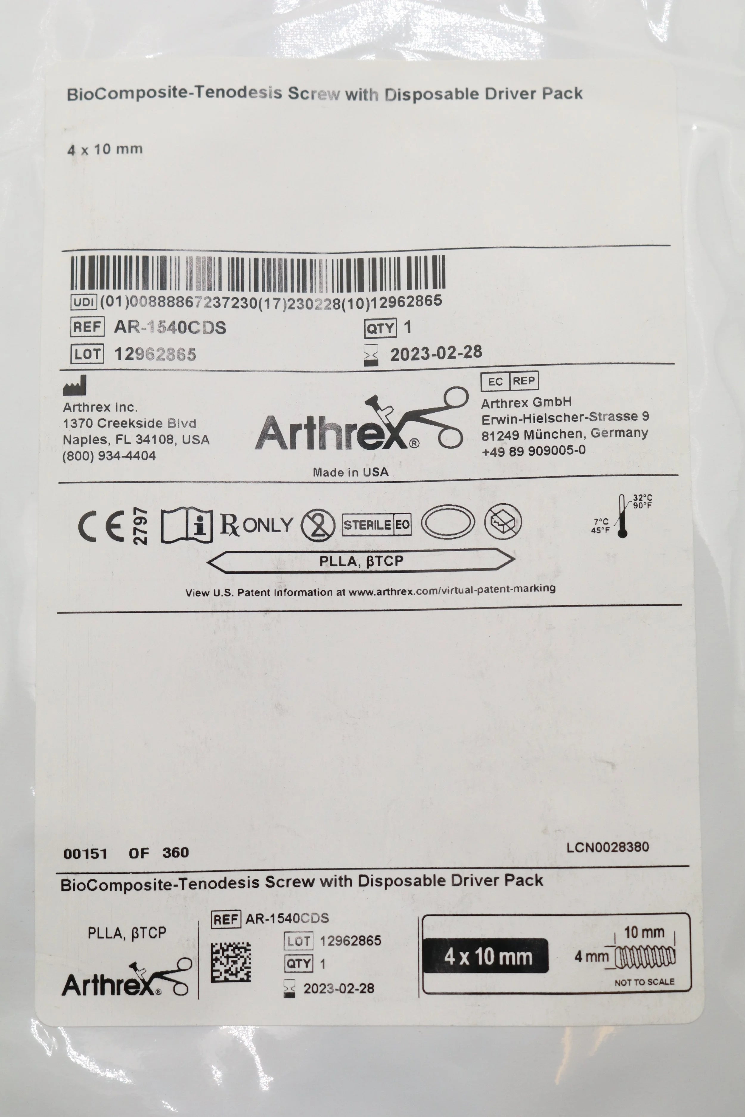 ARTHREX | AR-1540CDS | EXPIRED | BOX OF 5 | BioComposite-Tenodesis Screw With Disposable Driver Pack, 4 x 10mm