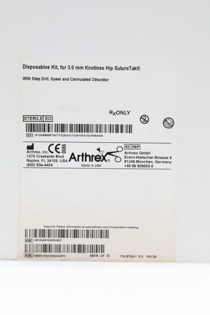 Arthrex | AR-1938DHS | Disposables Kit, for 3.0mm Knotless Hip SutureTak with Step Drill, Spear and Cannulated Obturator