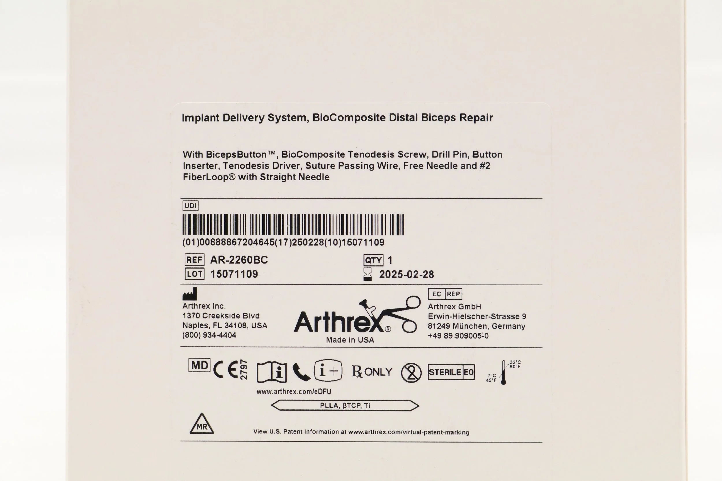 ARTHREX | AR-2260BC | EACHES | IMPLANT DELIVERY SYSTEM, BIOCOMPOSITE DISTAL BICEPS REPAIR KIT
