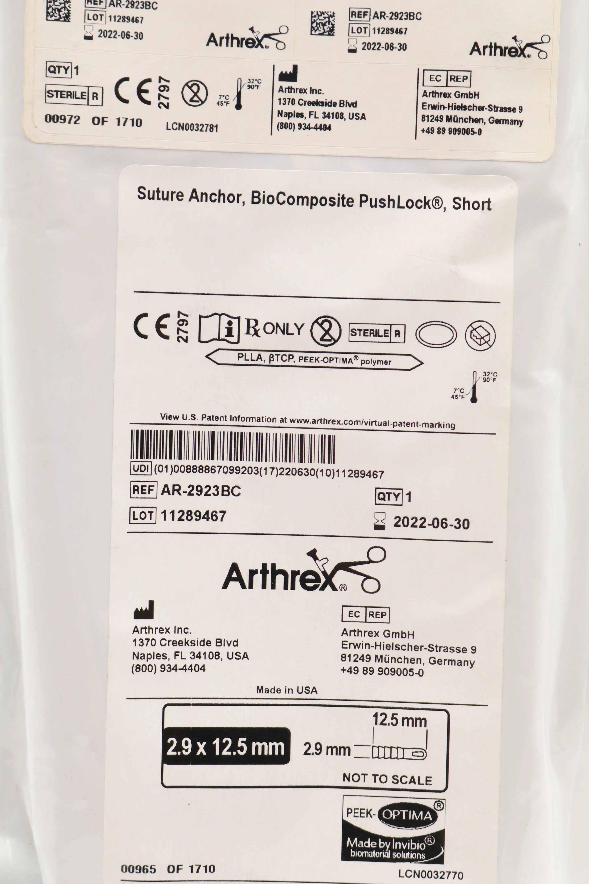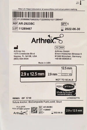Arthrex | AR-2923BC | EXPIRED | EACHES | Biocomposite Pushlock Short Anchor 2.9mm X 12.5mm