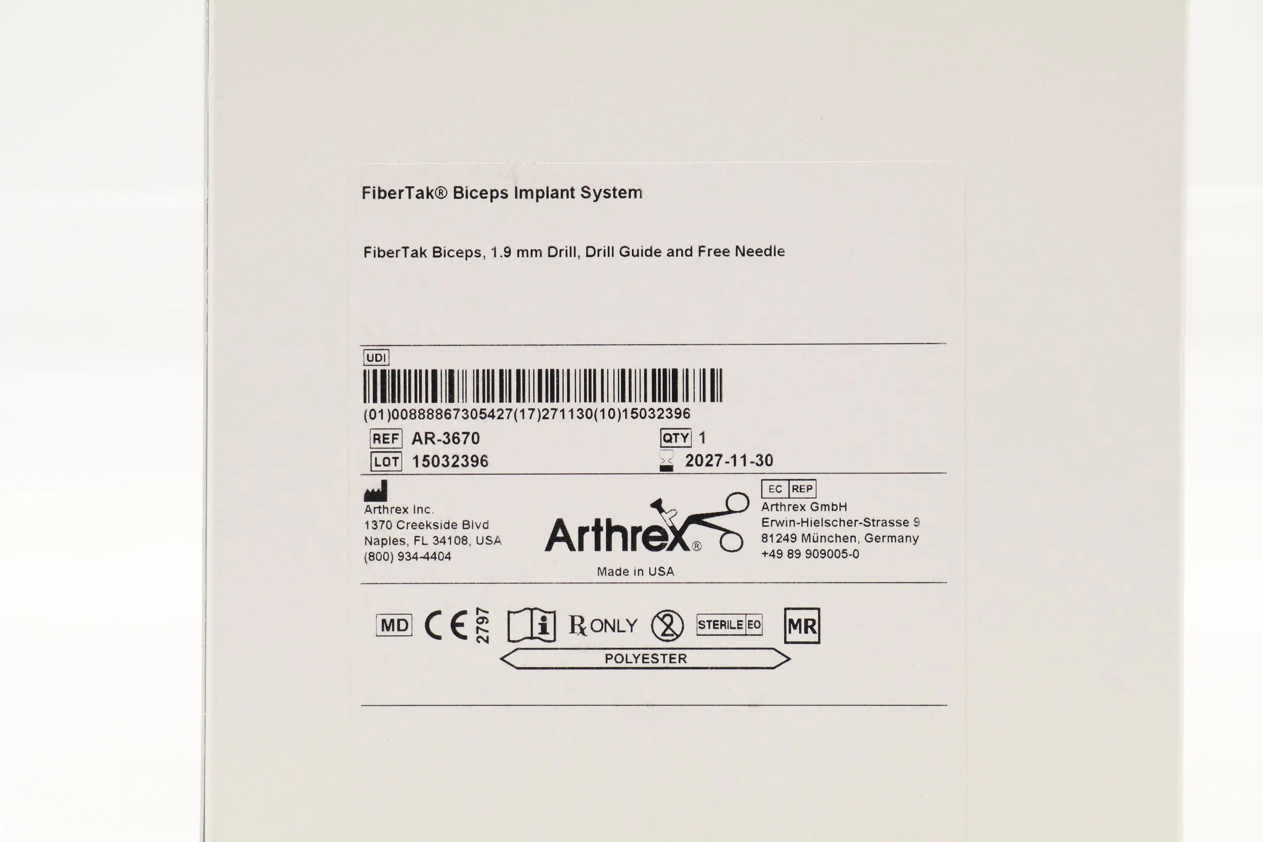 Arthrex | AR-3670 | KNOTLESS FIBERTAK BICEPS IMPLANT SYSTEM W/ANCHOR, DRILL GUIDE & 1.9MM DRILL