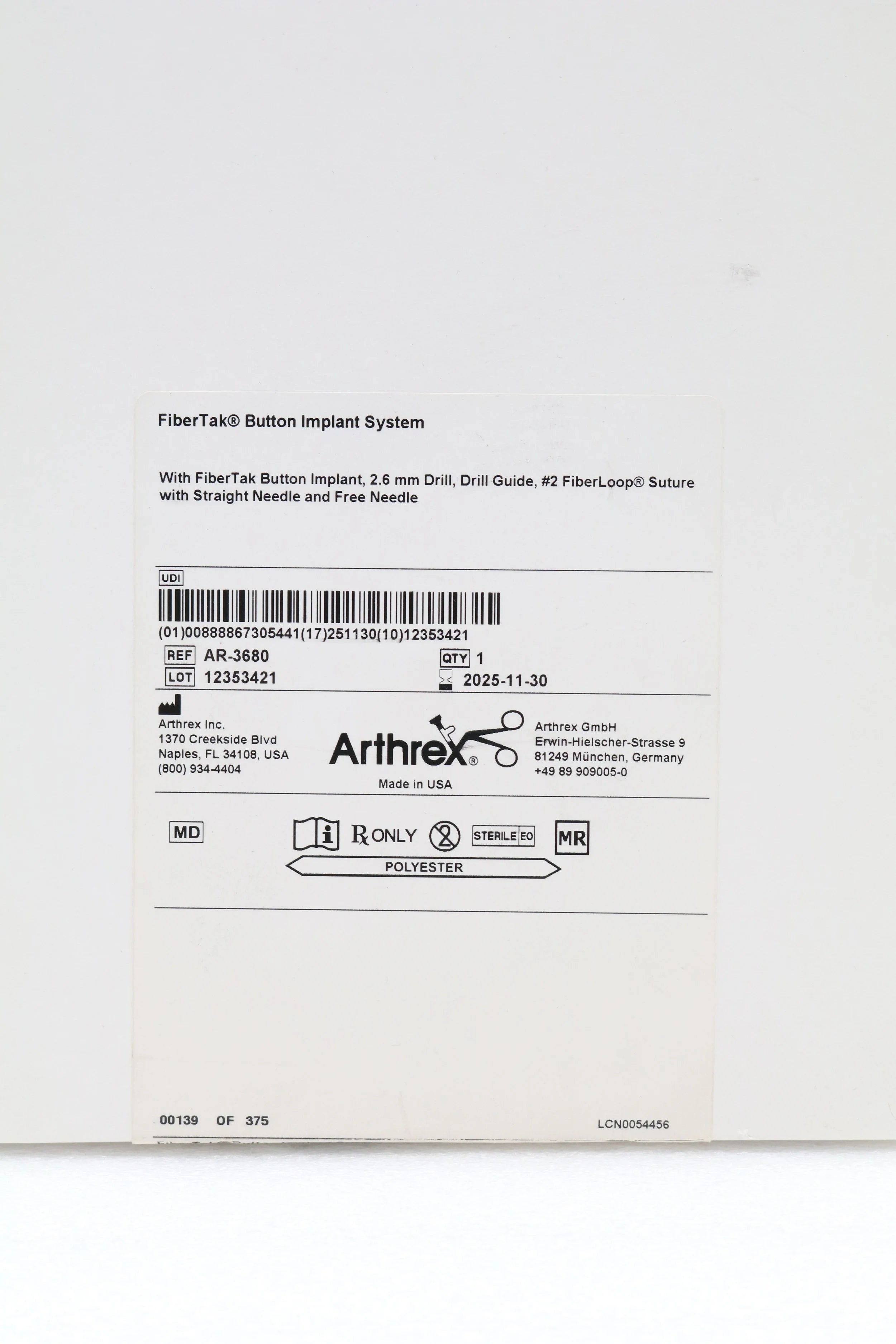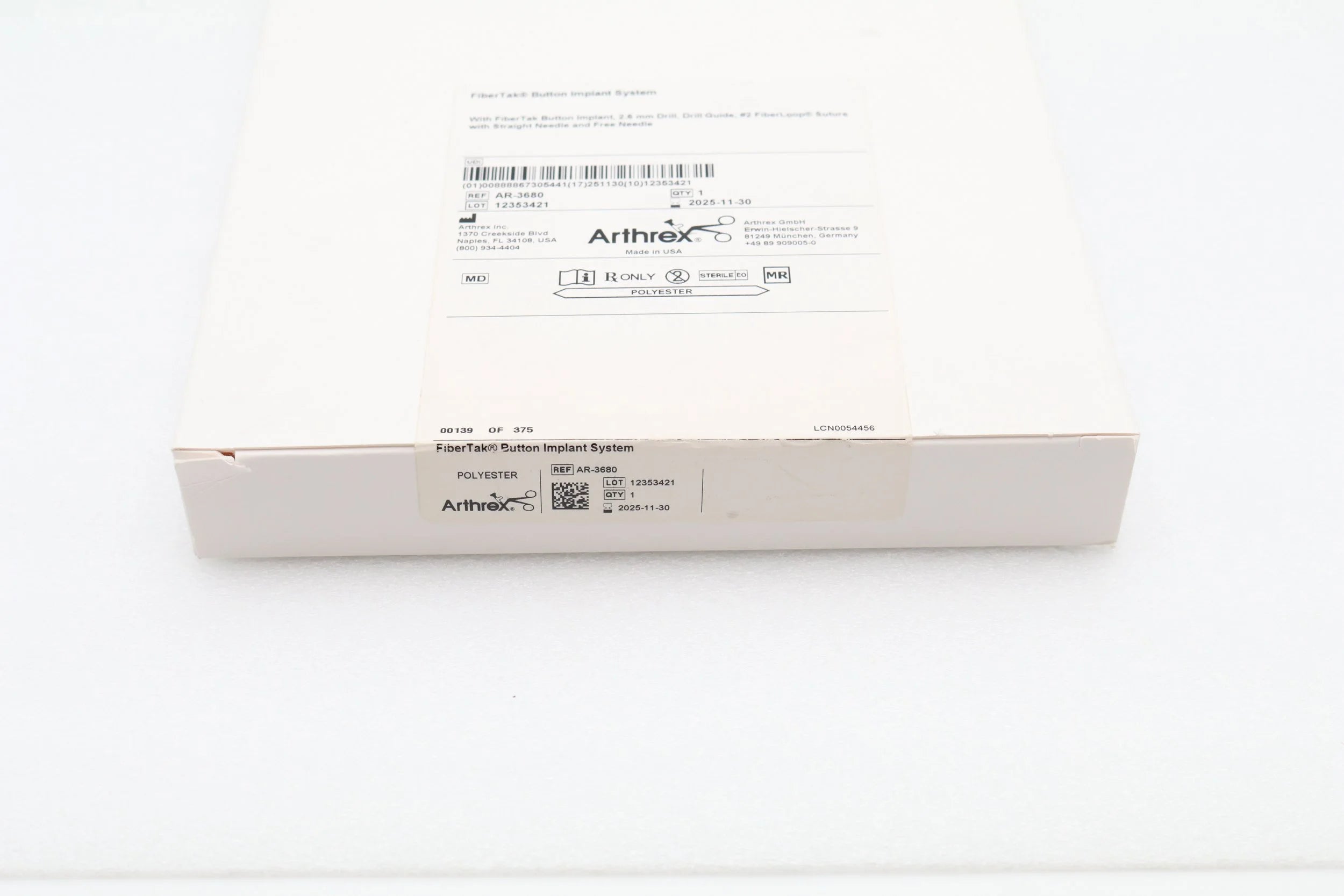 Arthrex AR-3680 FiberTak Button Implant System