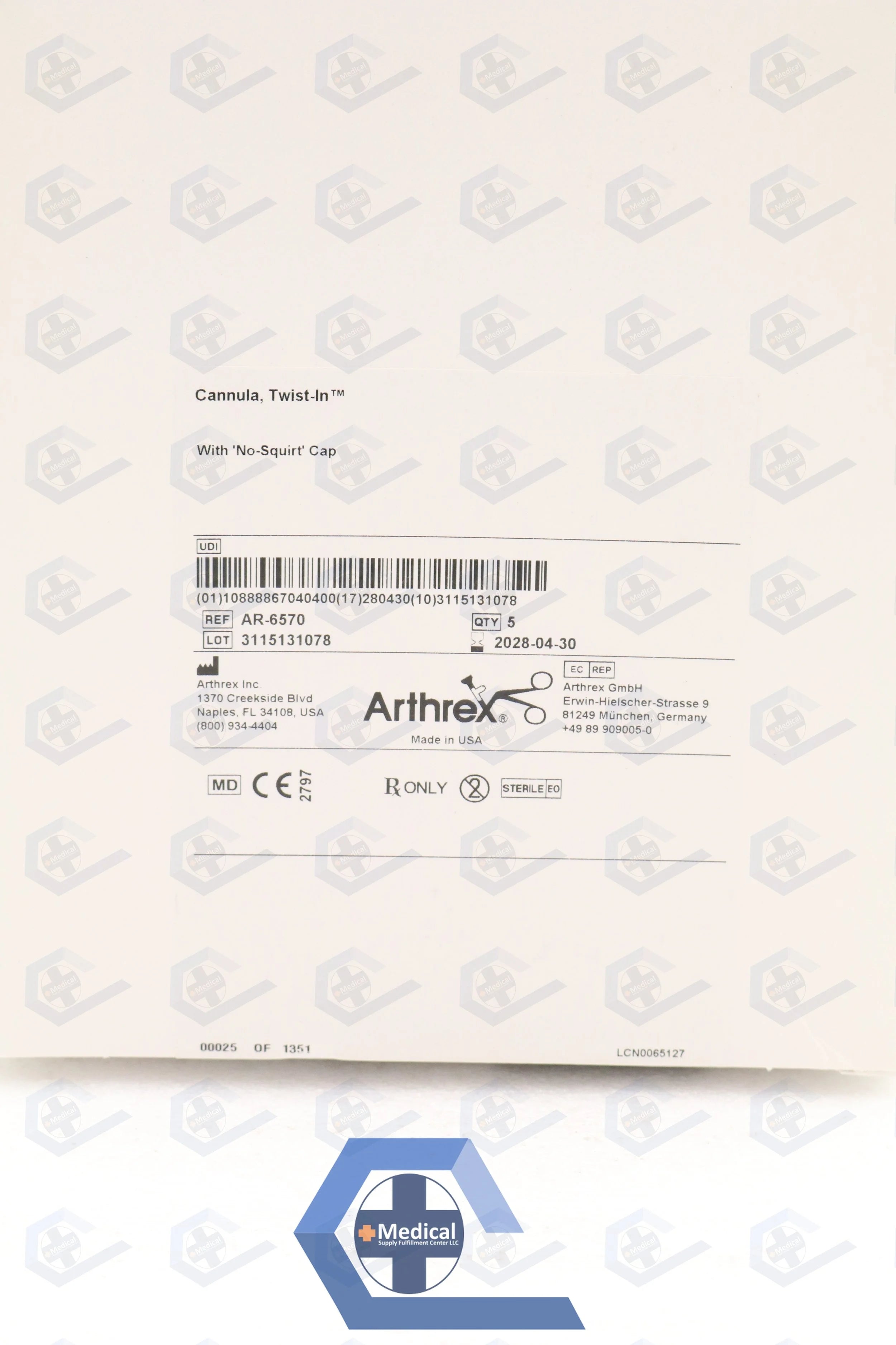 ARTHREX | AR-6570 | BOX OF 5 | CANNULA, TWIST-IN WITH 'NO-SQUIRT' CAP, 7MM ID X 7CM