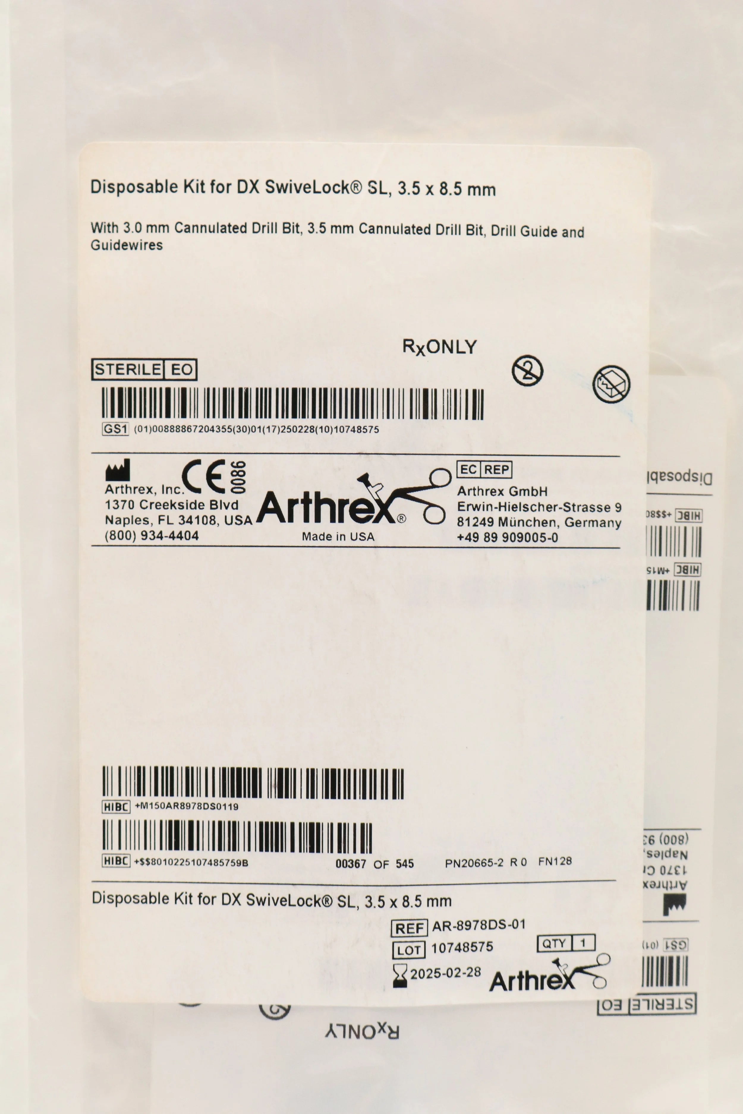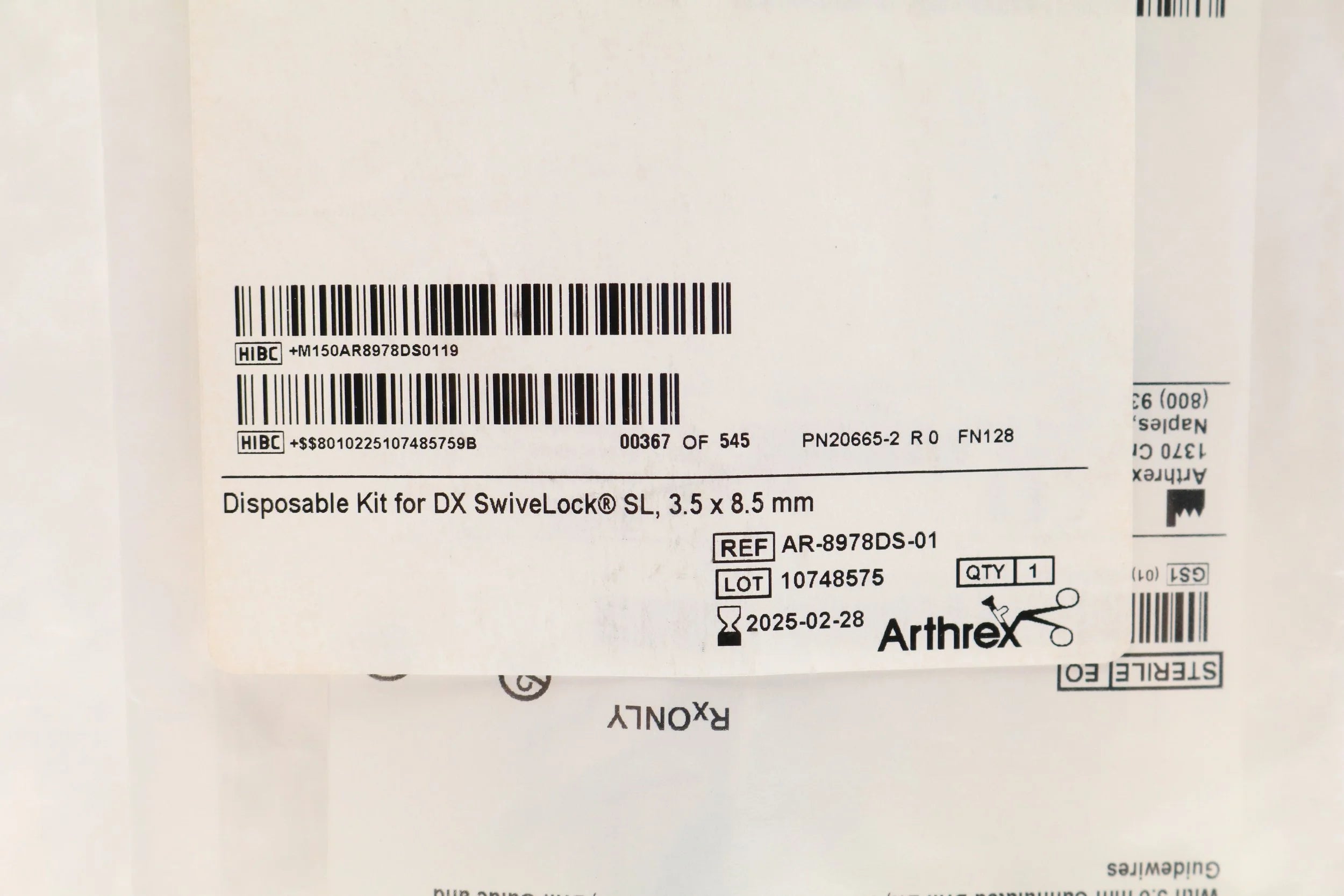 Arthrex AR-8978DS-01 SHORT DATE EACHES Disposable Kit for DX SwiveLock SL, 3.5mm x 8.5mm