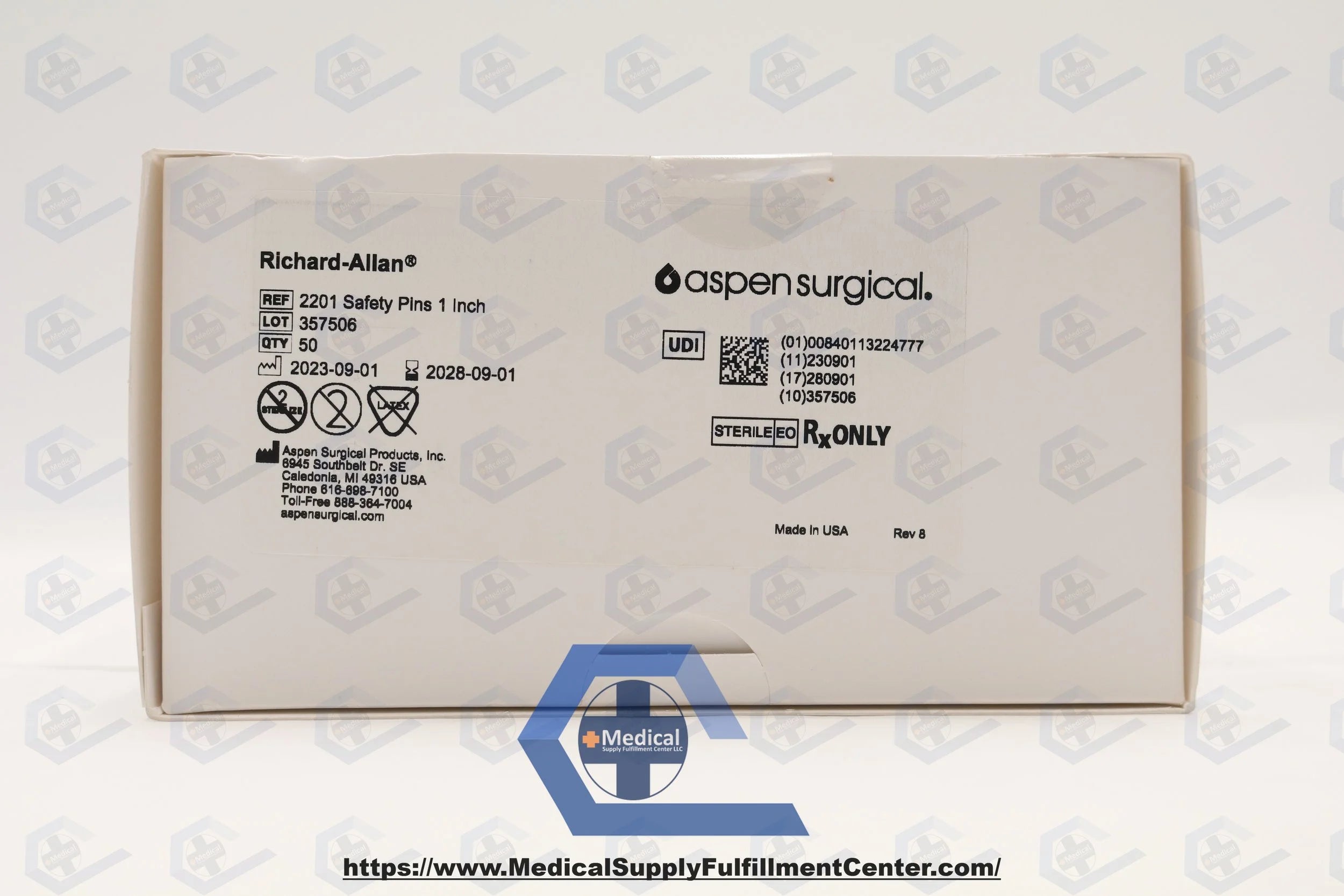 Aspen Surgical | 2201 | In Date | Box of 100 | Aspen Surgical Products Safety Pins - Safety Pin, 1"