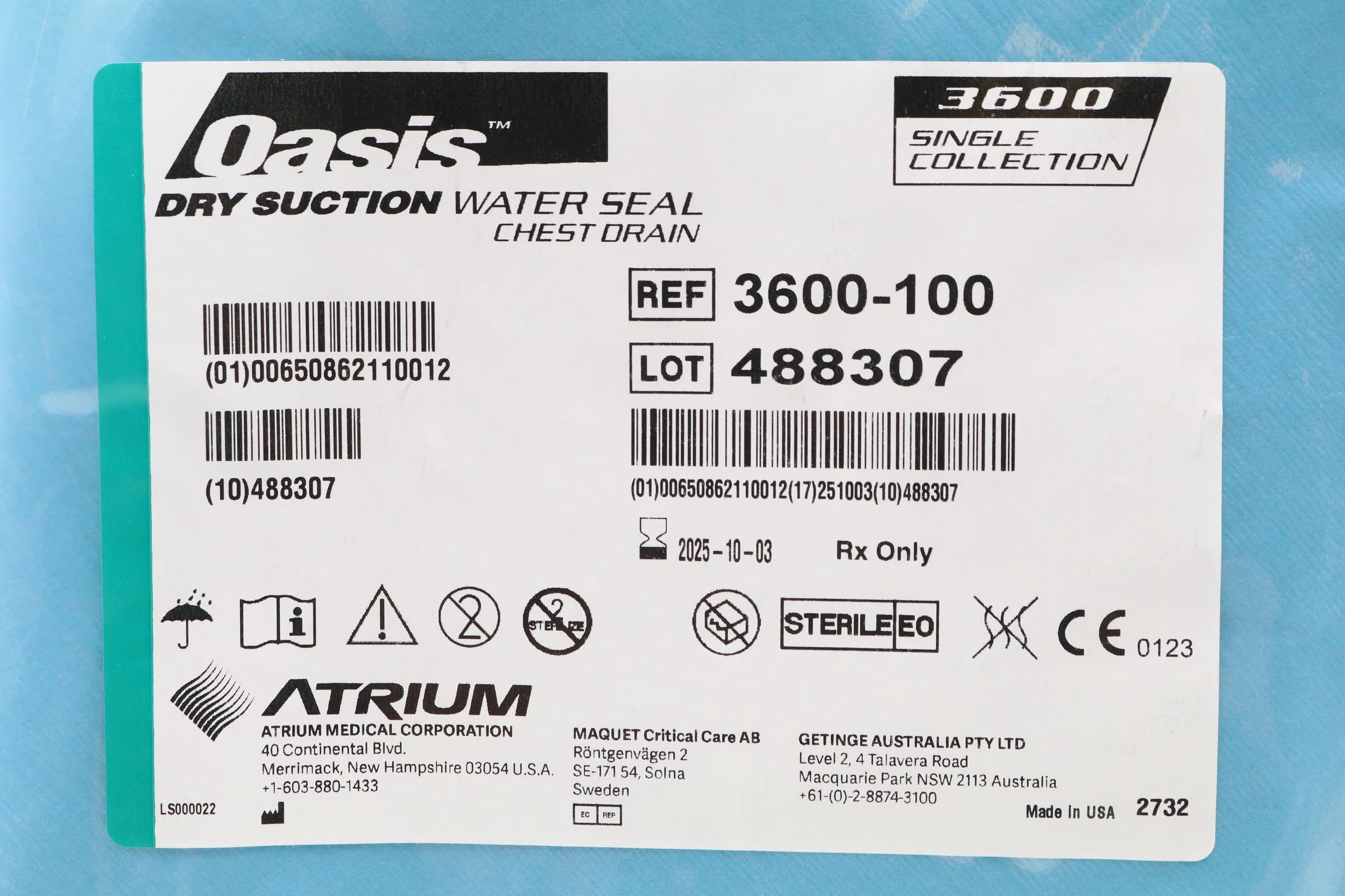 Atrium | 3600-100 | IN-DATE | EACHES | Oasis Dry Suction Water Seal Chest Drain