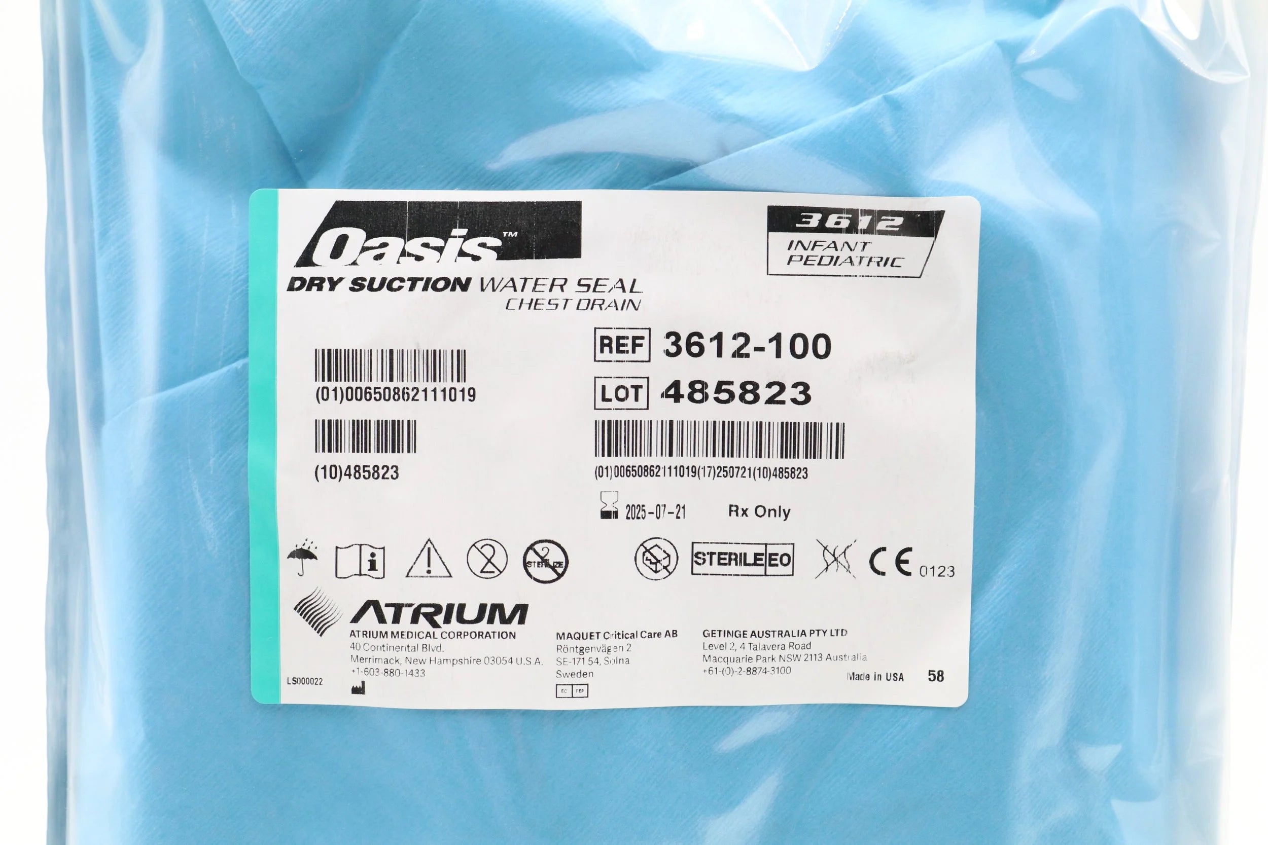 ATRIUM | 3612-100 | IN-DATE | EACHES | OASIS DRY SUCTION WATER SEAL CHEST DRAIN INFANT PEDIATRIC