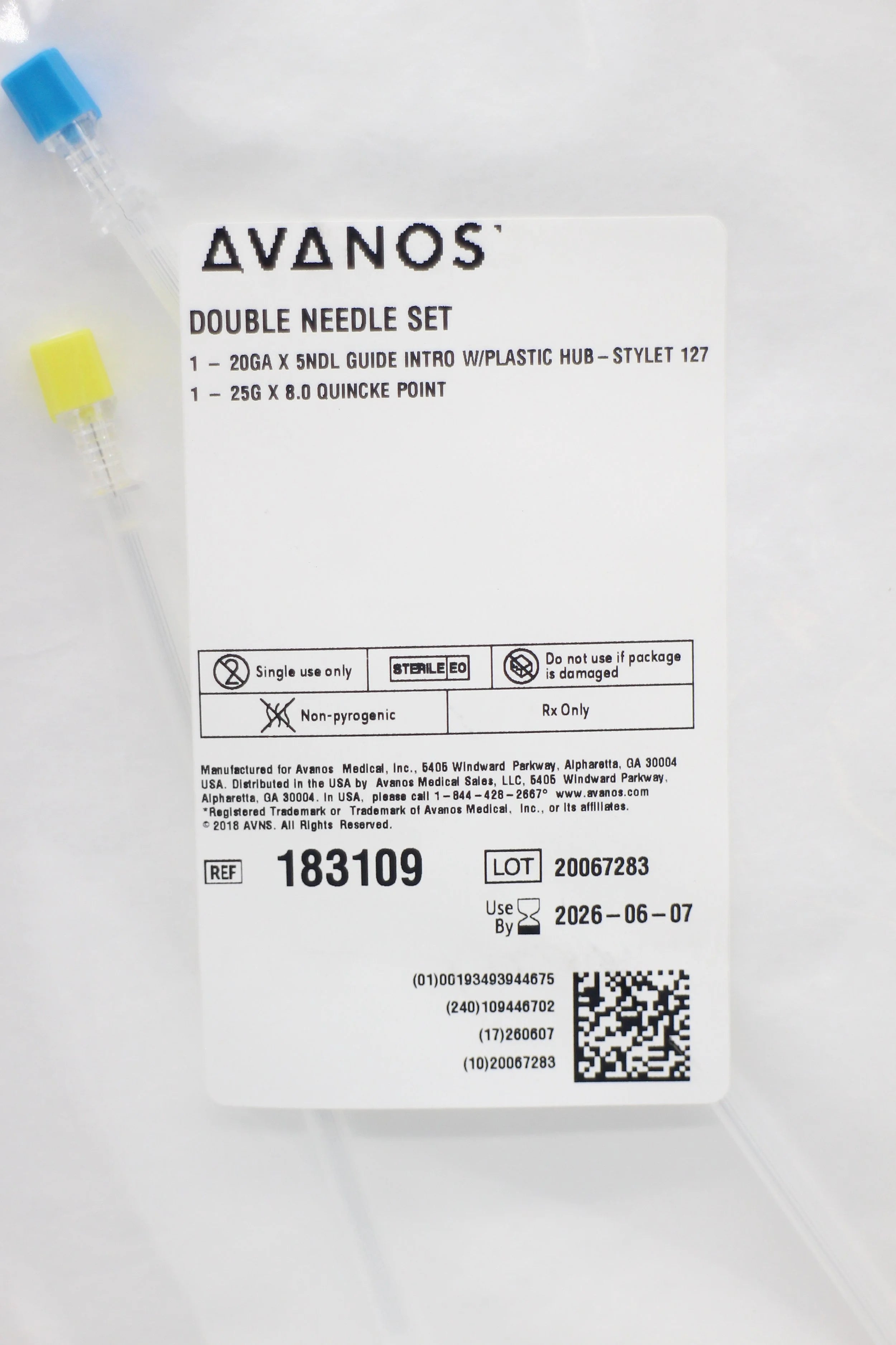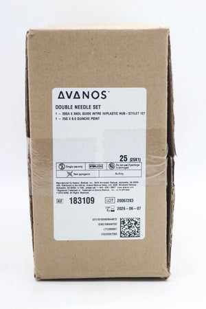 Avanos | 183109 | IN-DATE | Box of 25 | Spinal Needle with Introducer * 8 Inch - Needle , 5 Inch - Introducer 25 Gauge Needle / 20 Gauge Introducer Quincke Style