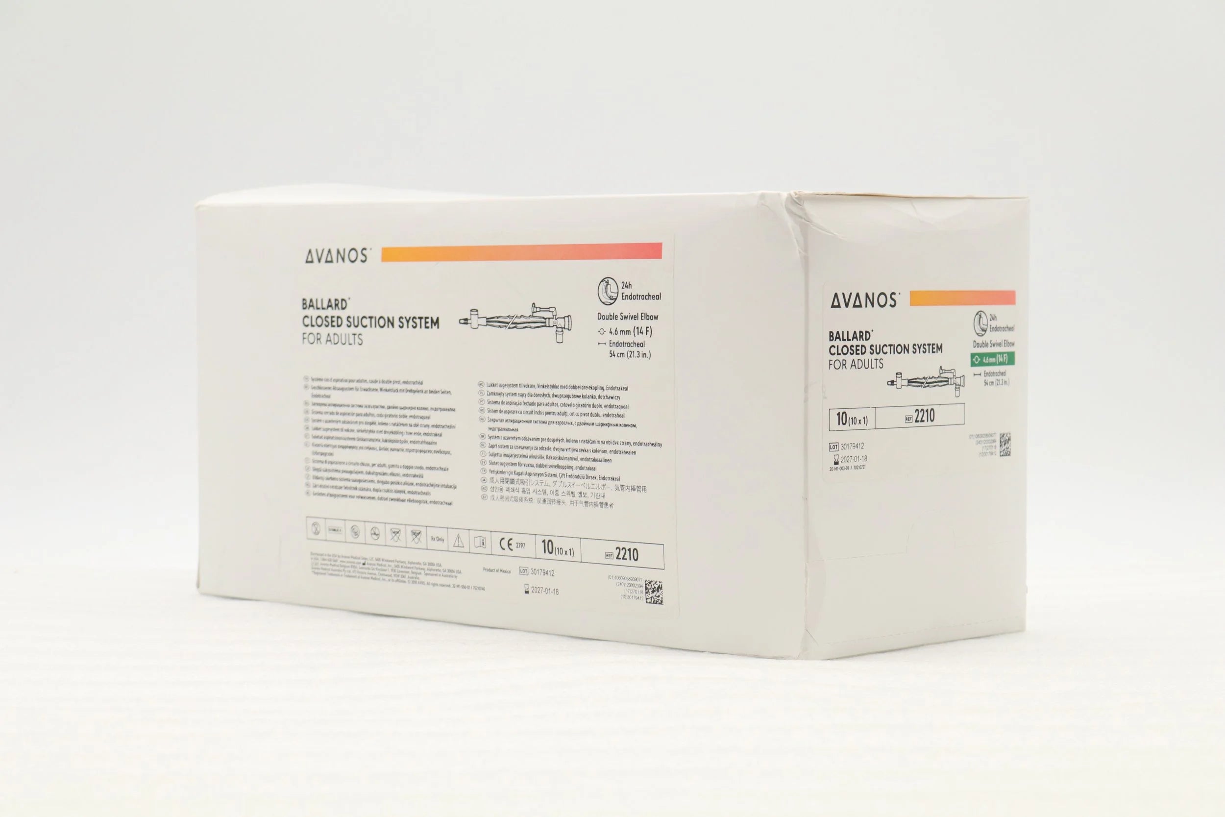 Avanos | 2210 | SHORT DATE | BOX OF 10 | Adult Trach Care Closed Suction System Kit - Adult Trach Care Closed Suction System Kit for Endotracheal Tube, Double Swivel Elbow, 14 Fr x 54 cm (Halyard)