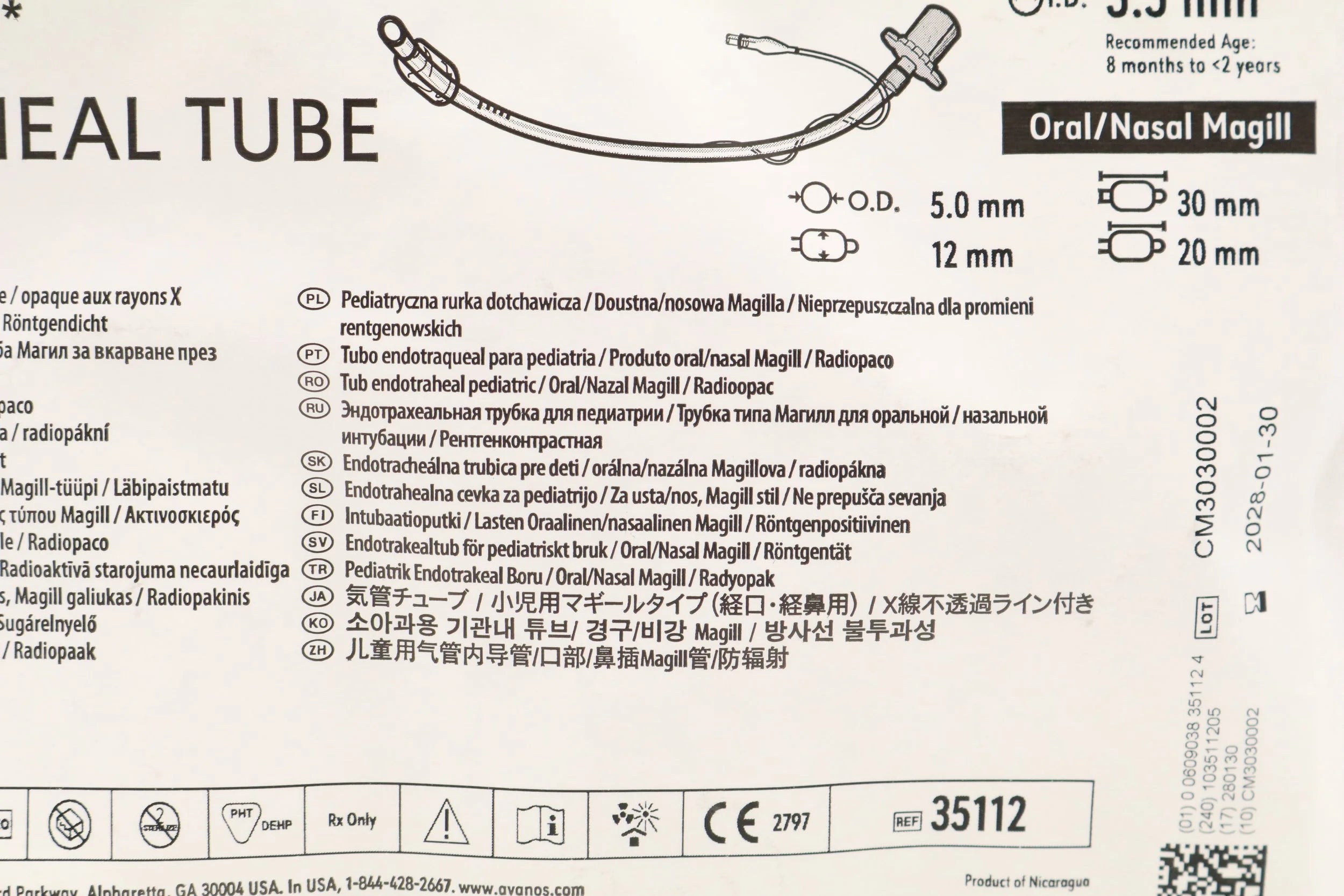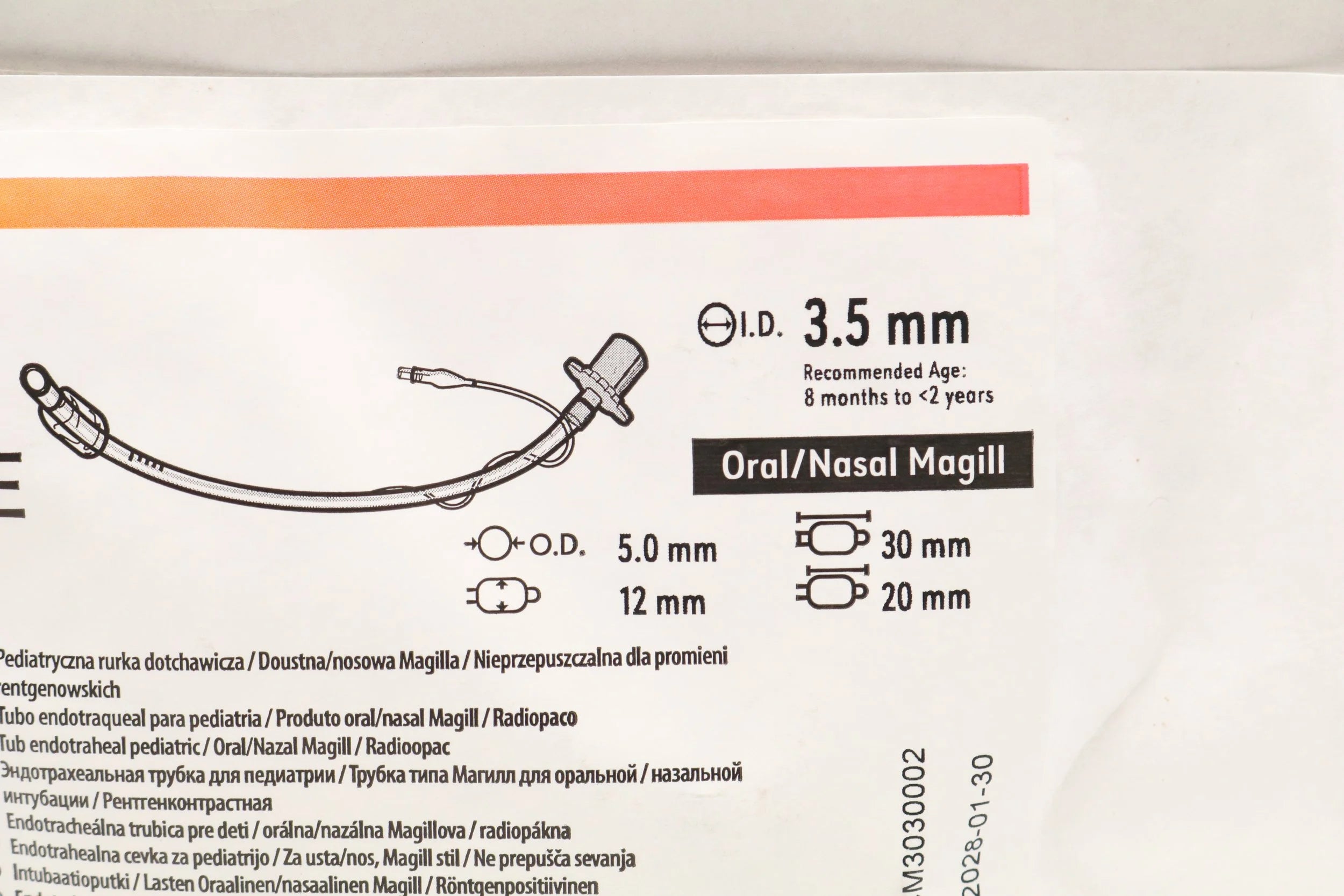 Avanos Medical | 35112 | Endotracheal Tube, Pediatric, Oral/Nasal Magill, 3.5mm