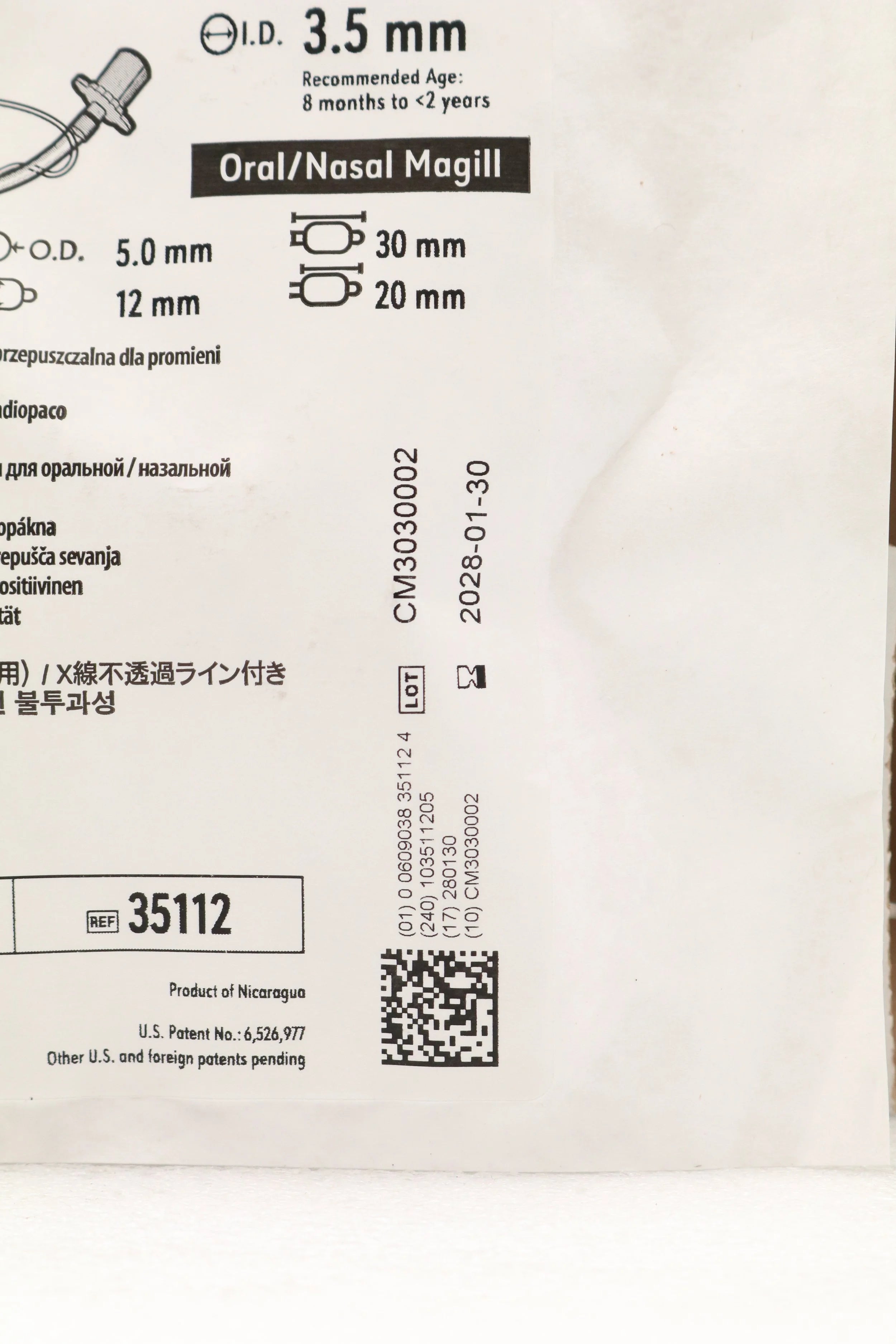 Avanos | 35112 | BOX OF 10 | Endotracheal Tube, Pediatric, Oral/Nasal Magill, 3.5mm