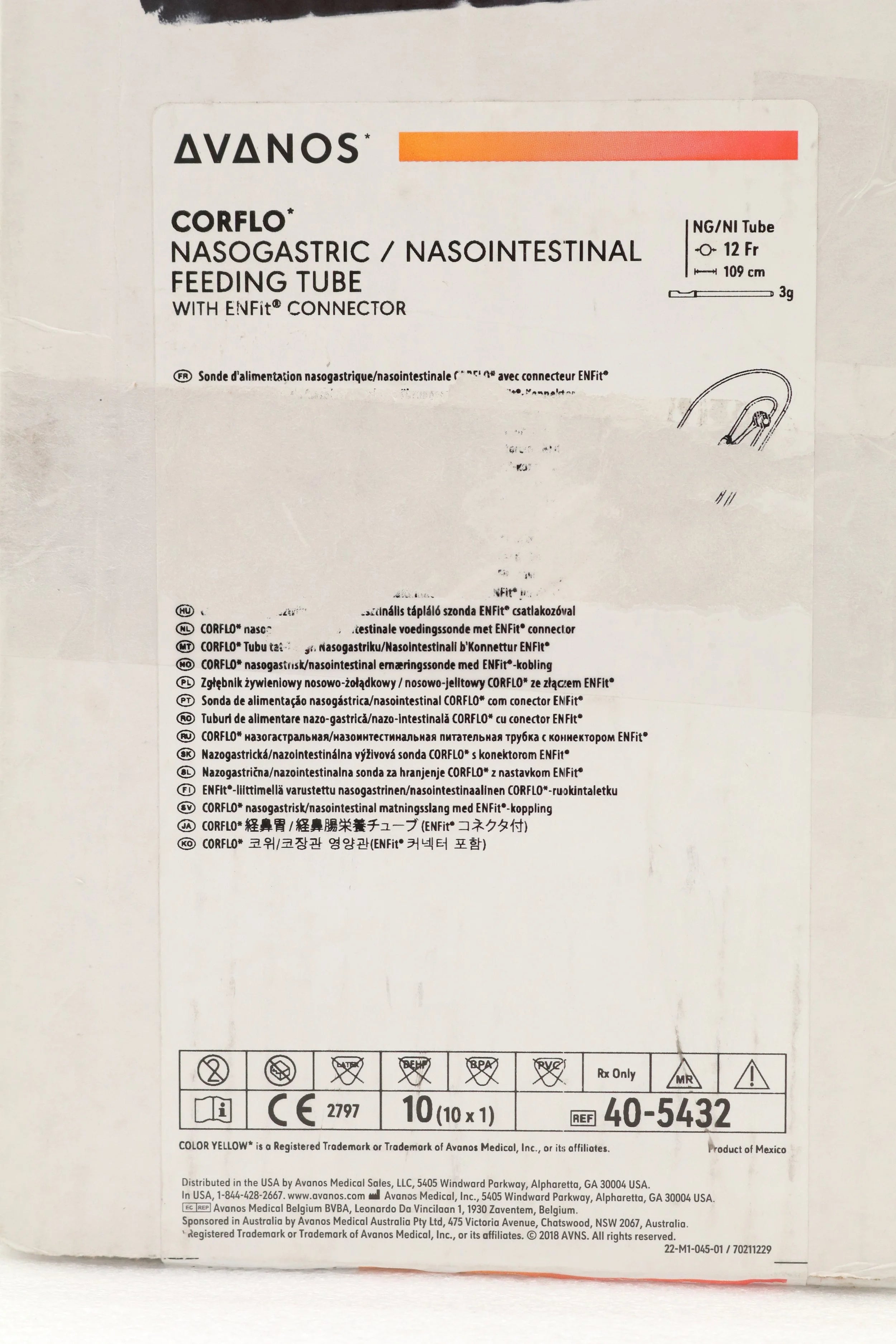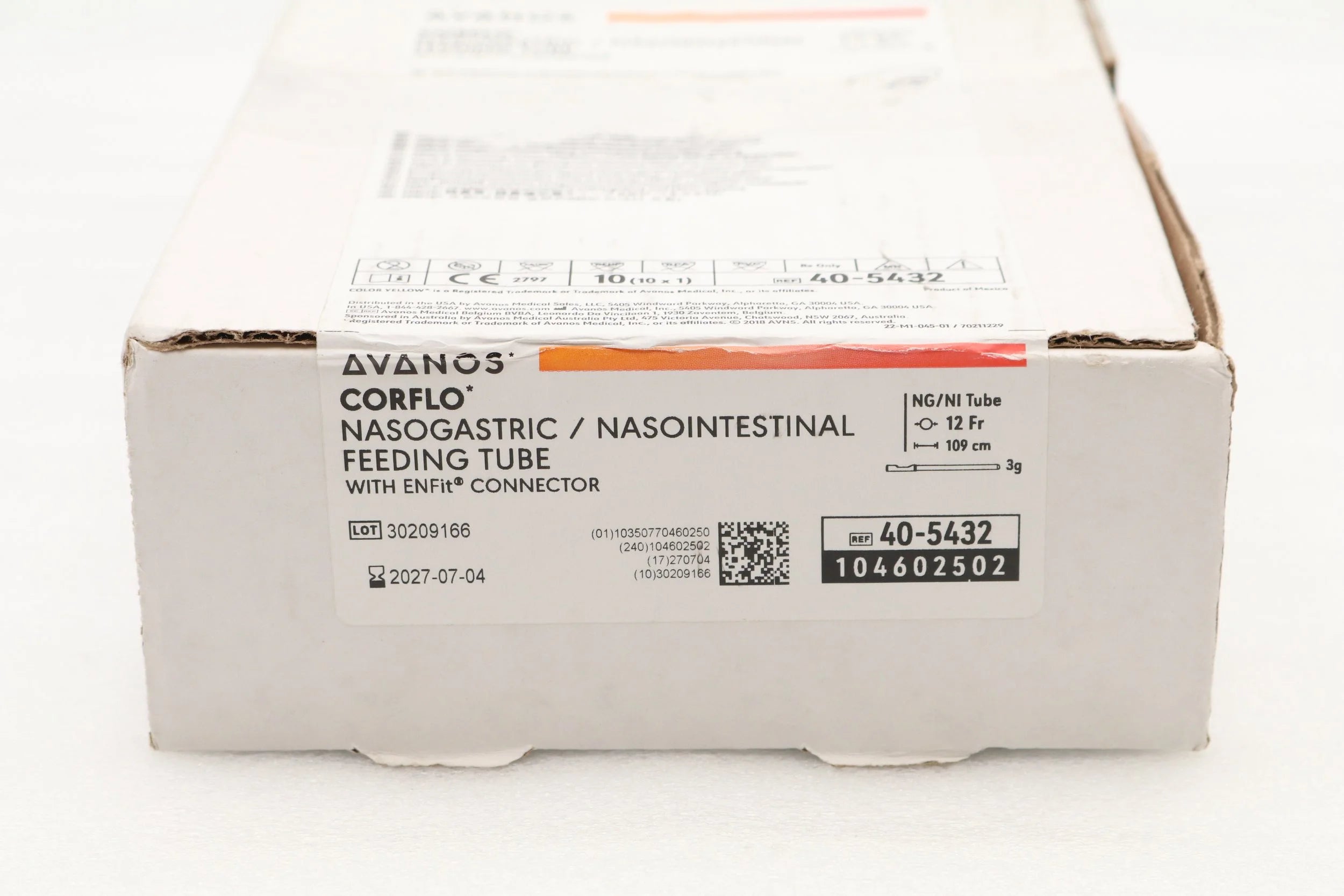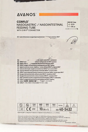AVANOS | 40-5432 | IN-DATE | BOX OF 10 | Corflo Anti-IV Enteral Feeding System - CORFLO Nasogastric / Nasointestinal Feeding Tube without Stylet, Fr 12, 43", Weighted