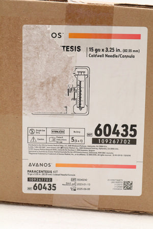 Avanos Medical | 60435 | SHORT DATE | CASE OF 5 | Paracentesis Kit, 15G, 3¼"