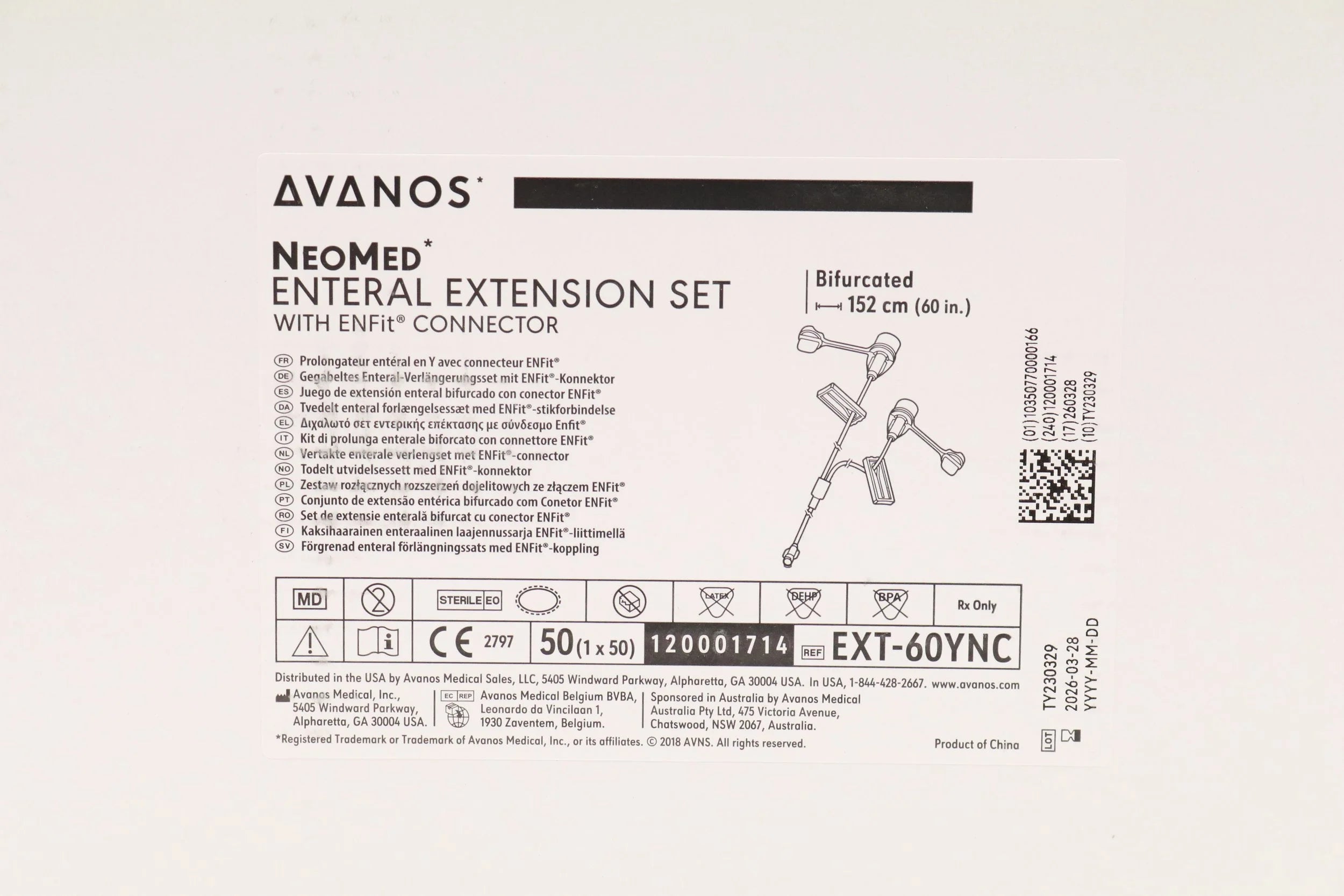 AVANOS | EXT-60YNC | SHORT-DATE | BOX OF 50 | NeoMed ENFit Compliant NeoConnect Enteral Extension Set - NeoConnect Bifurcated ENFit Extension Set, 60"