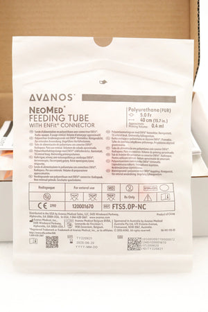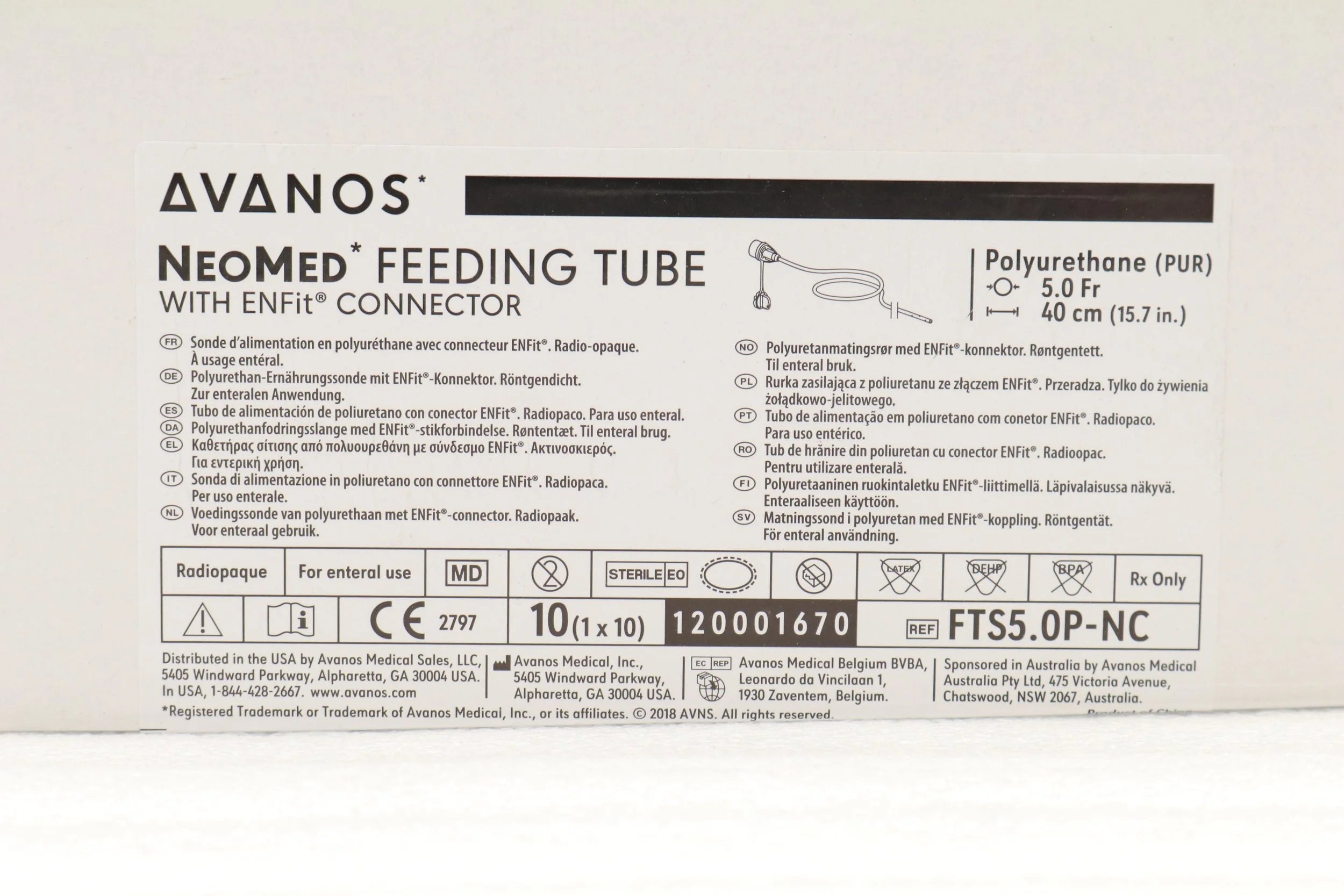 Avanos Medical | FTS5.0P-NC | BOX OF 10 | SHORT DATE | NeoConnect Polyurethane Enteral Feeding Tube with ENFit Connector, Radiopaque Stripe, Orange, 5.0 Fr, Length 40 cm