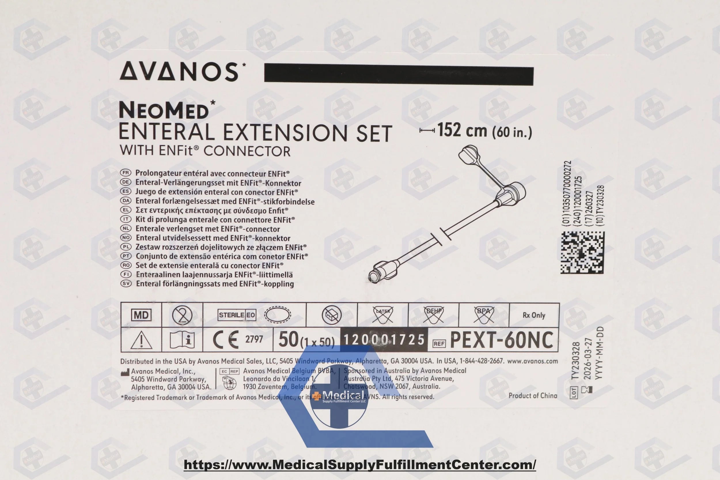 Avanos | PEXT-60NC | In Date | Box of 50 | Avanos NeoMed ENFit Compliant NeoConnect Enteral Extension Set - NeoConnect ENFit Extension Set, 60"