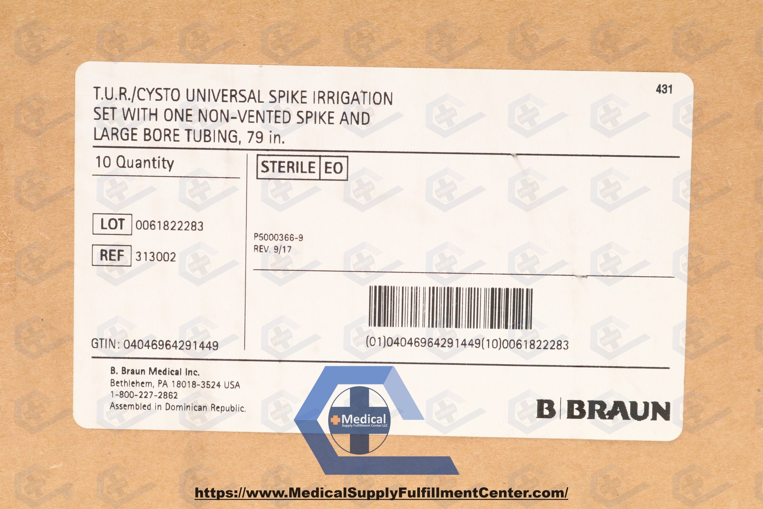 BRAUN | 313002 | NO DATE | BOX OF 10 | T.U.R. Cysto-Bladder Irrigation Set PIC 0.281 Inch ID 80 Inch 1 Lead Plastic