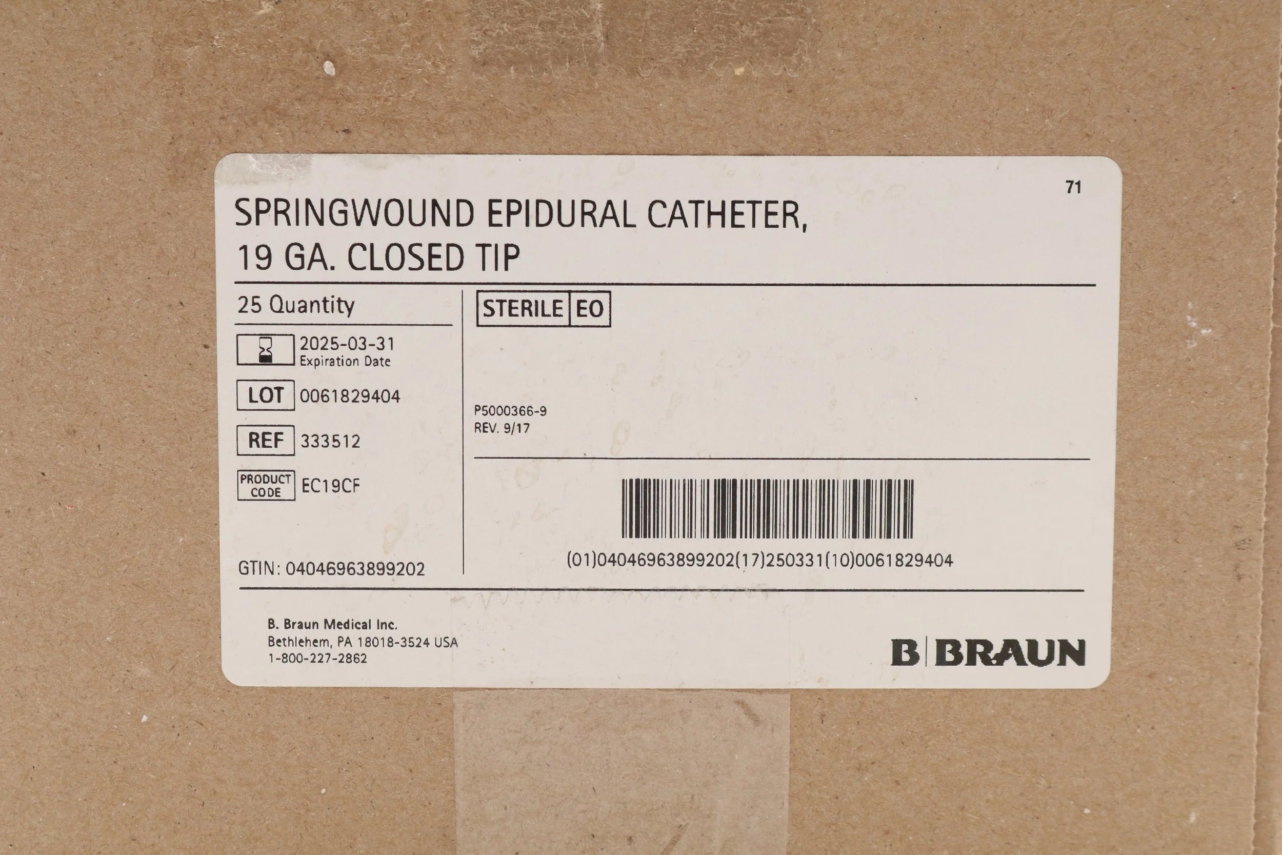 Braun | 333512 | SHORT DATE | CASE OF 25 | 19 Ga. x 36 in. Radiopaque Polyamide Springwound PERIFIX FX Catheter - closed tip with catheter connector and threading assist guide