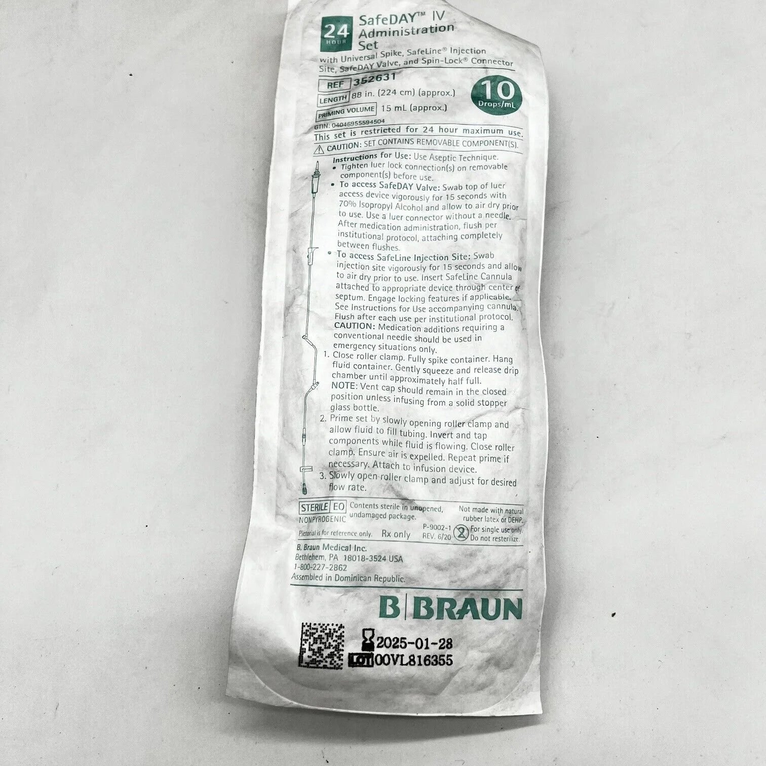 Braun | 352631 | SHORT DATE | Box of 50 | Primary IV Administration Set with Extension Set SafeDay™ Gravity 2 Ports 10 Drops / mL Drip Rate Without Filter 88 Inch Tubing Solution
