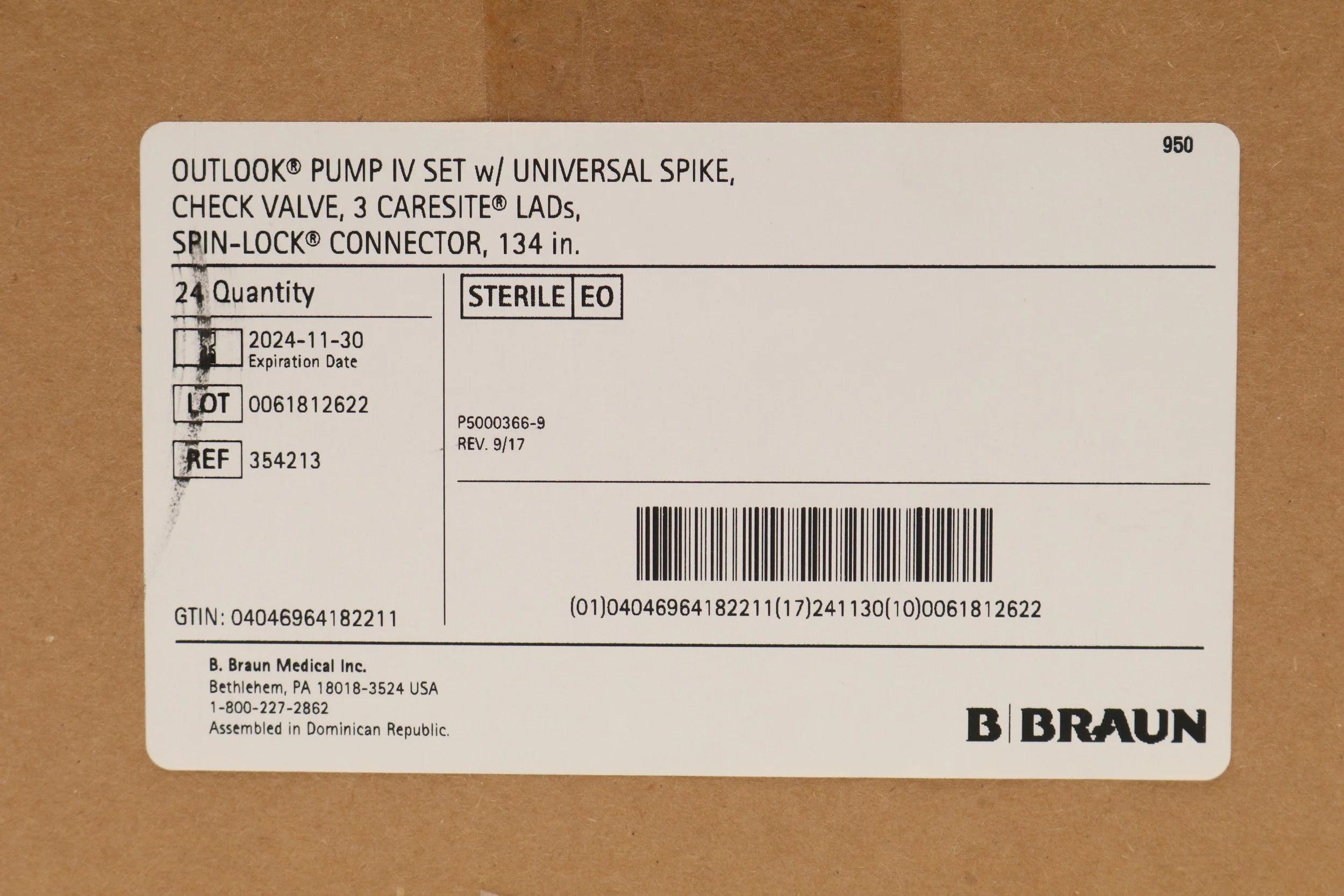 B Braun | 354213 | SET, IV, OUTLOOK, 15DROP W/3 CARESITE