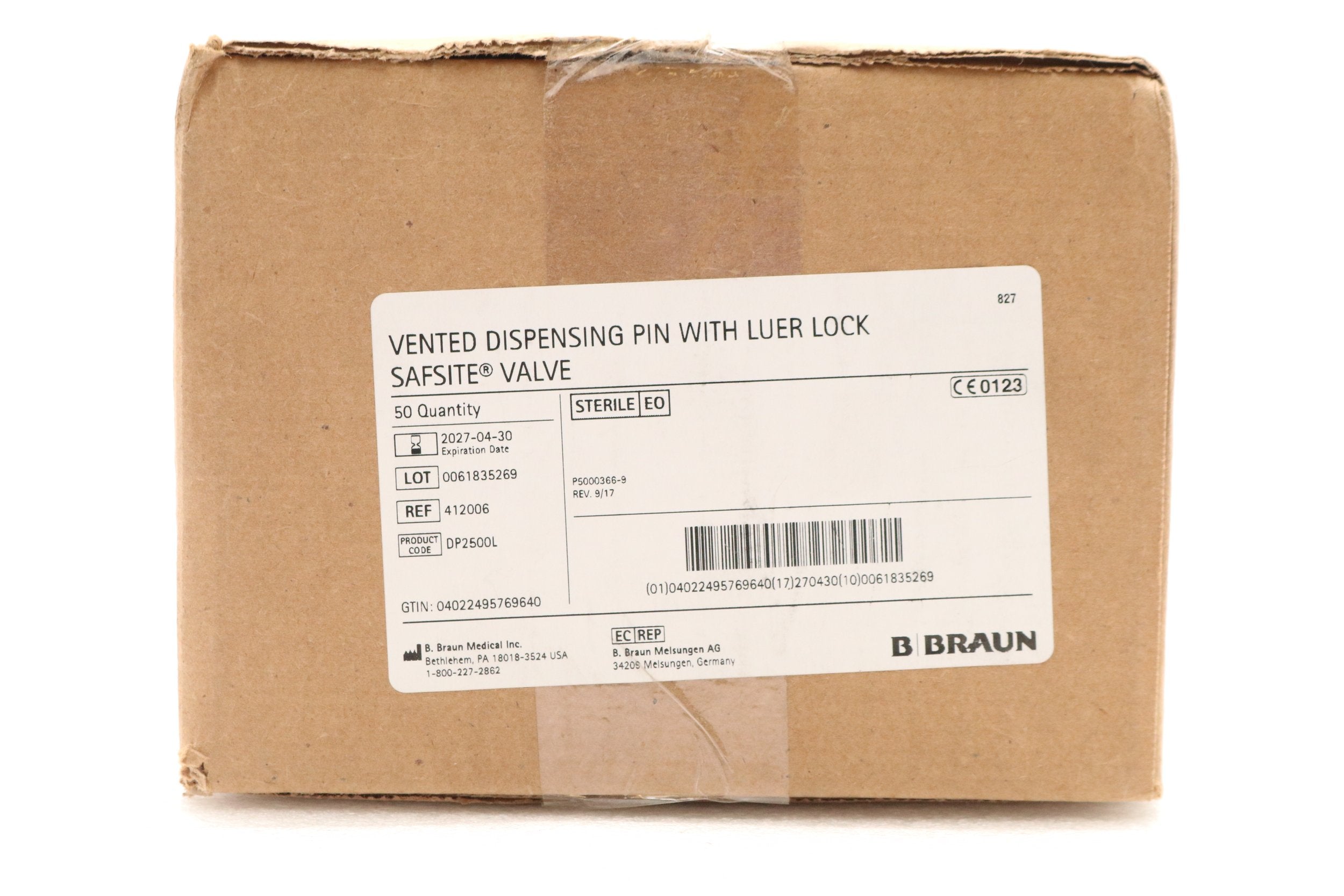 Braun | 412006 | IN-DATE | CASE OF 50 | Standard Spike Dispensing Pin Safsite PIN, DISPENSING W/VLV LL