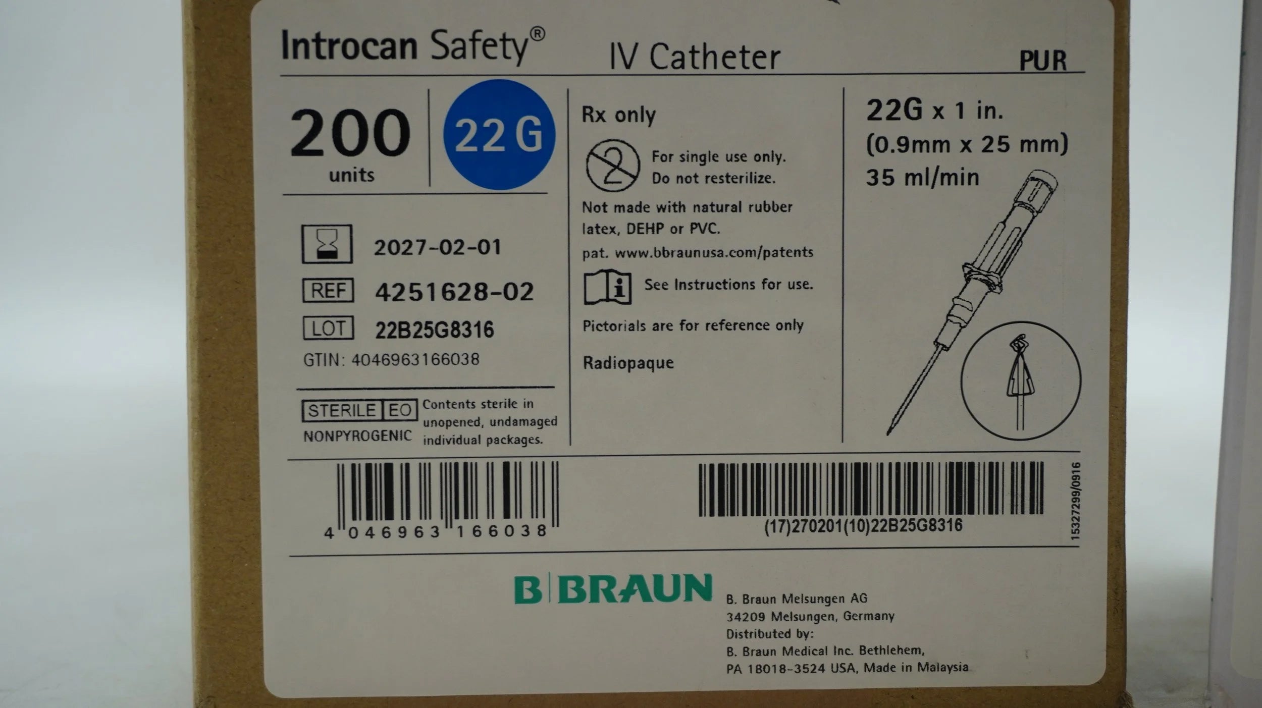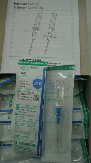 Braun | 4251628-02 | IN-DATE | BOX OF 200 | CATHETER, IV, INTROCAN, 22GX1", POLY SAFETY