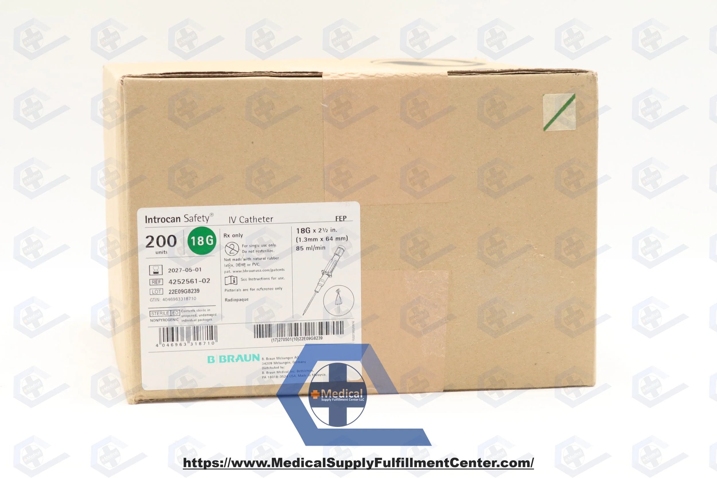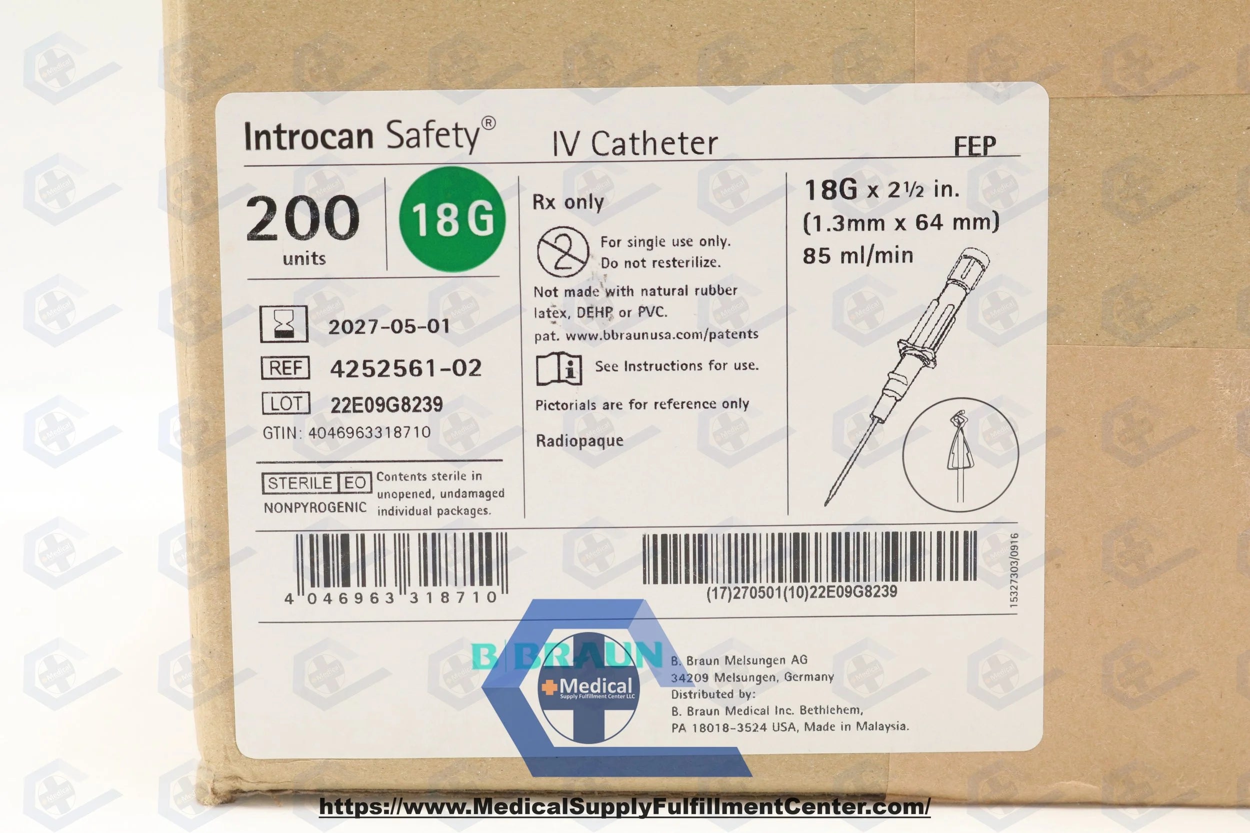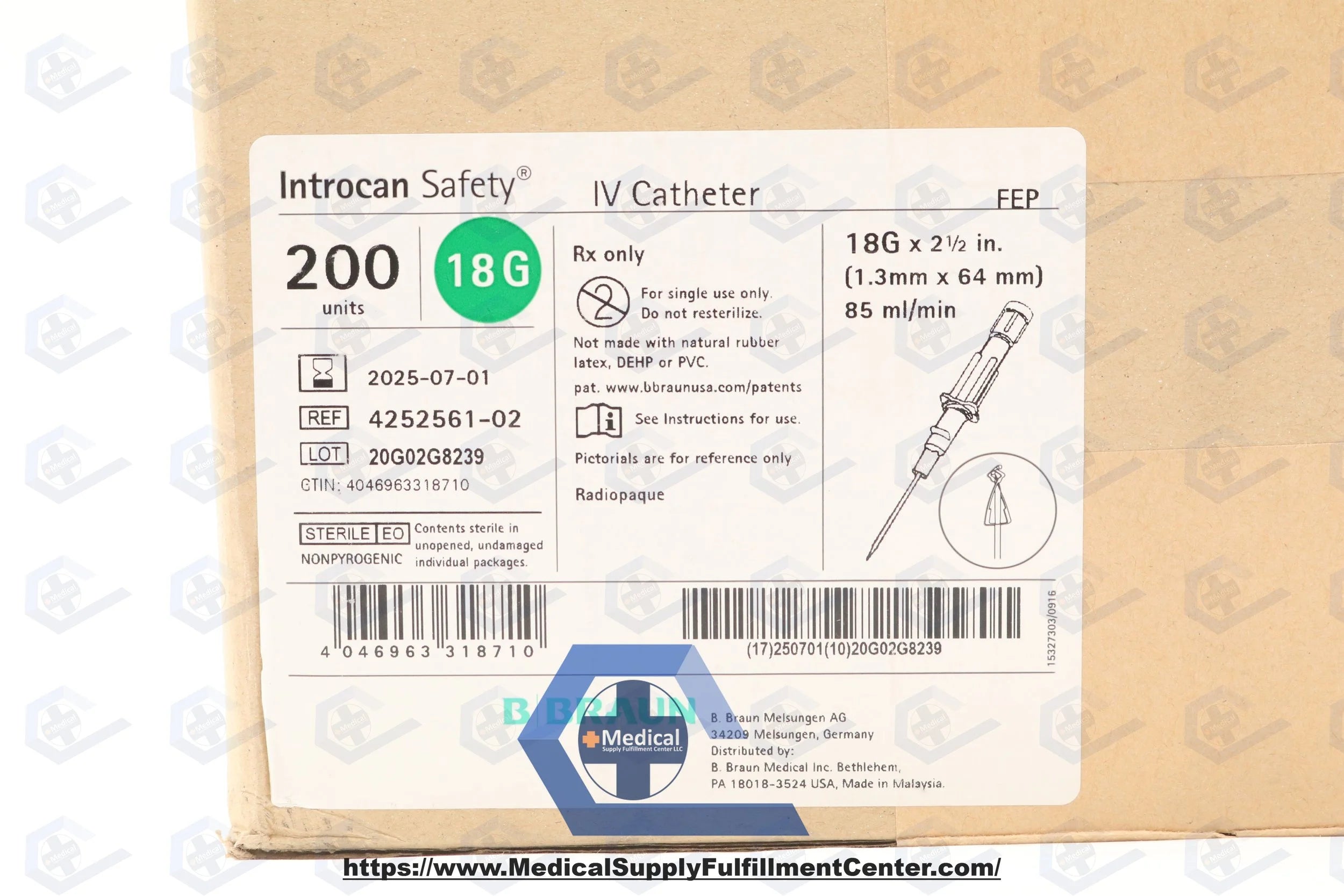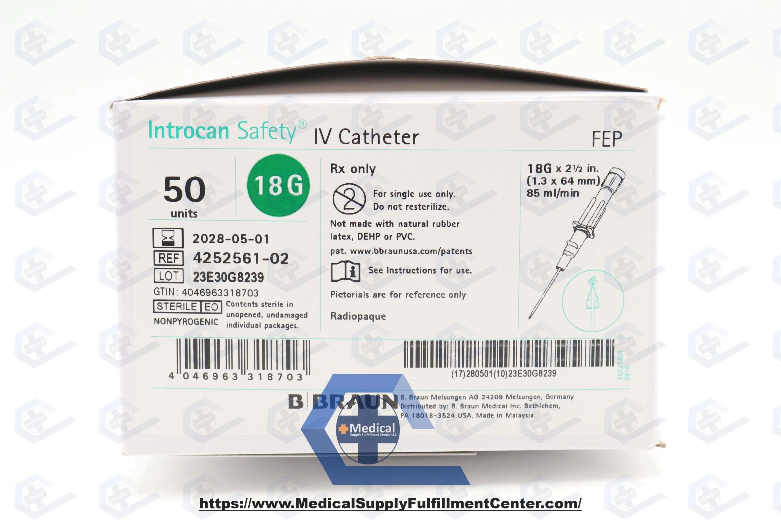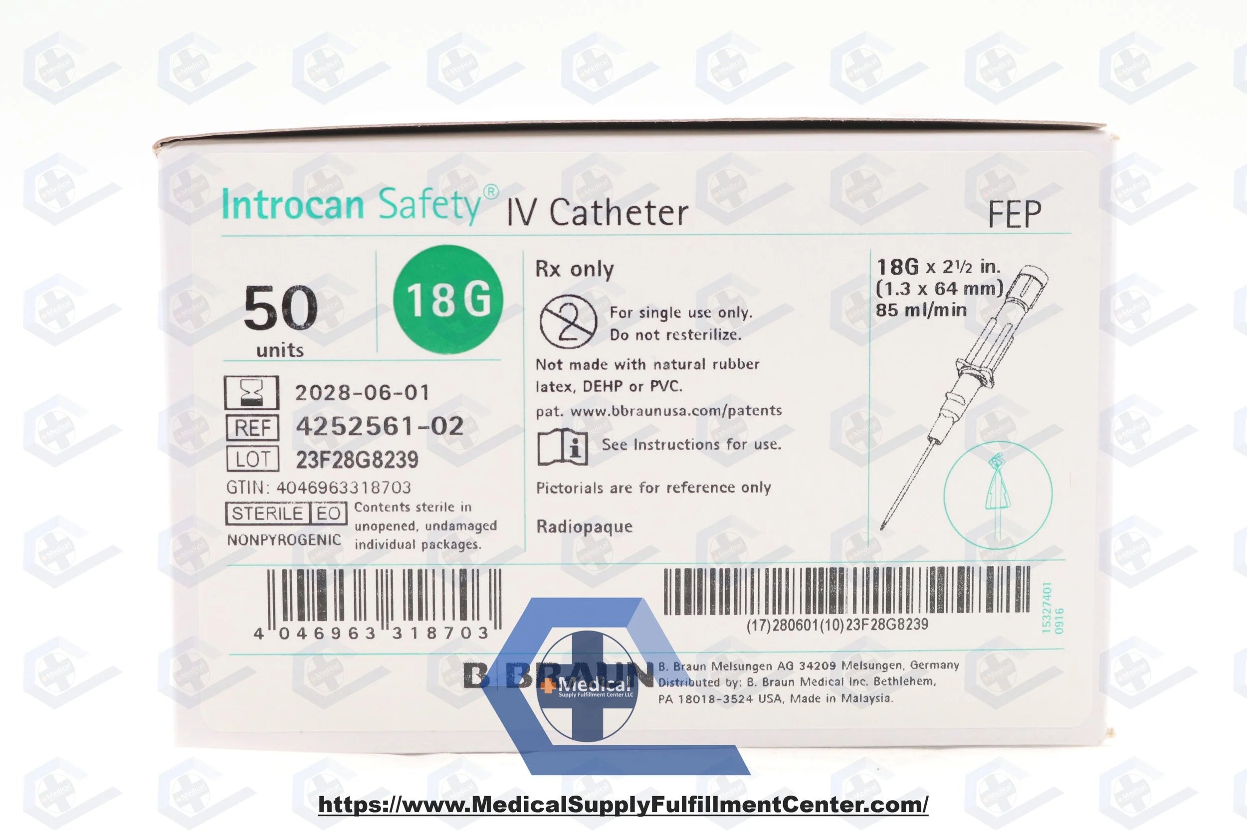 B Braun | 4252561-02 | Introcan Safety IV Catheter 18G x 2.5" FEP, Straight