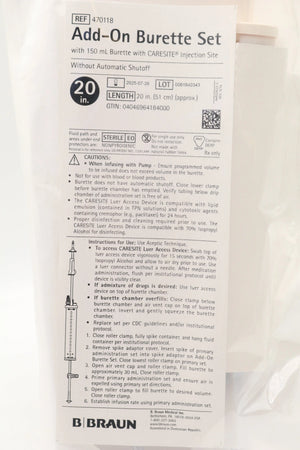 B Braun | 470118 | (HALF CASE, NO BOX) SET, BURETTE, CARESITE ADD-ON