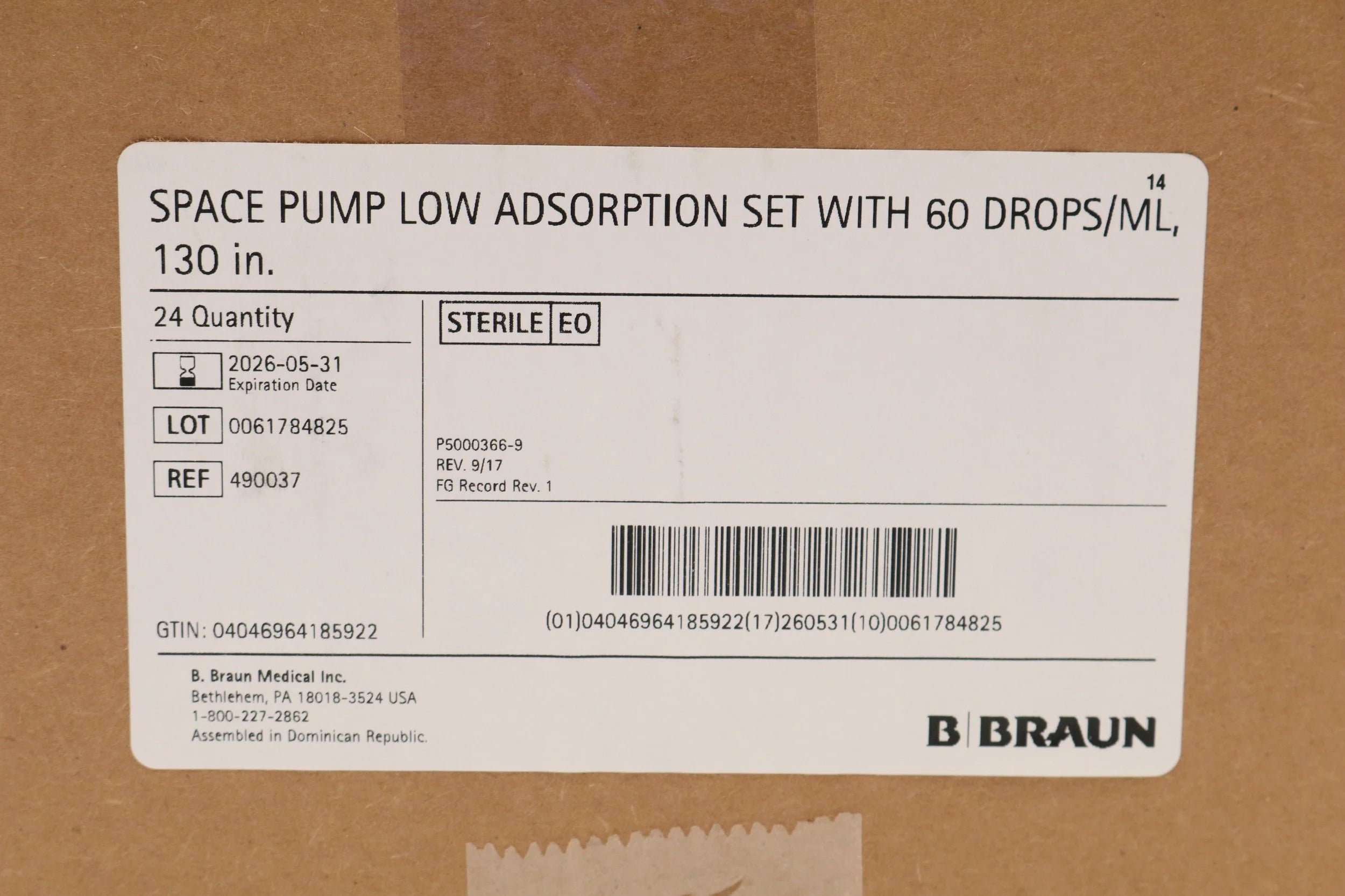Braun | 490037 | IN-DATE | CASE OF 24 | 60 Drop Infusomat Space Pump Low Absorption Set