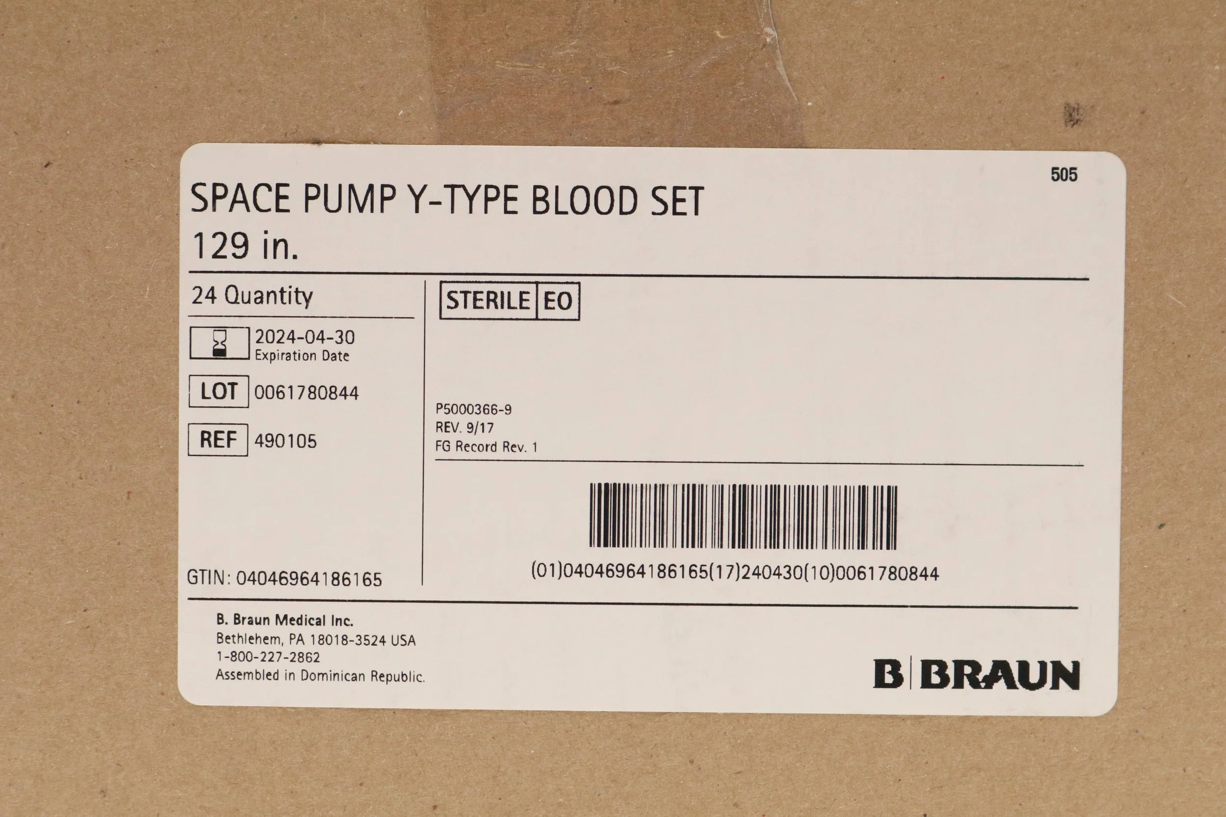 Braun | 490105 | EXPIRED | CASE OF 24 | SET, BLOOD PUMP, Y-TYPE, CARESITE, 170MIC