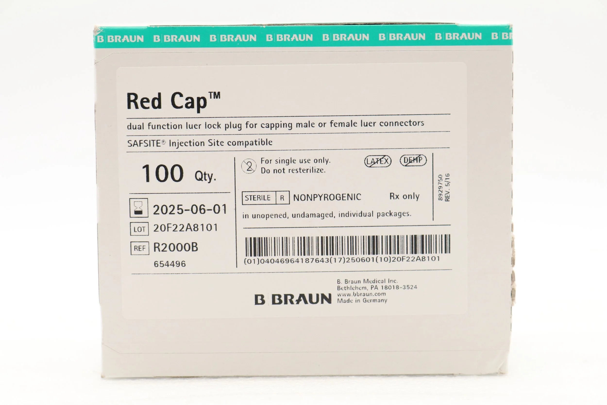 BRAUN | R2000B | BOX OF 100 | Disposable Dual Function Luer Lock Plug for Capping Male or Female Luer Connectors, Red Cap