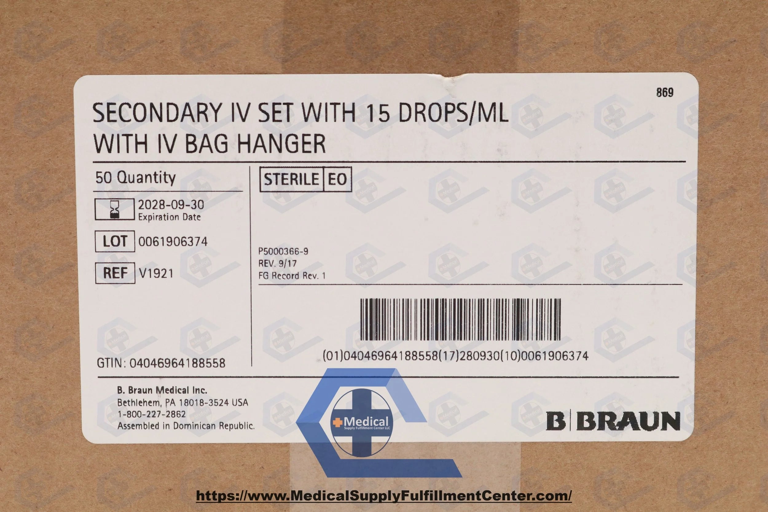 Braun Medical | V1921 | IN-DATE | Box of 50 | IV Administration Set 40" 15 Drops/mL Priming Volume 8.8mL Ea