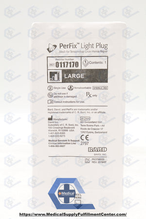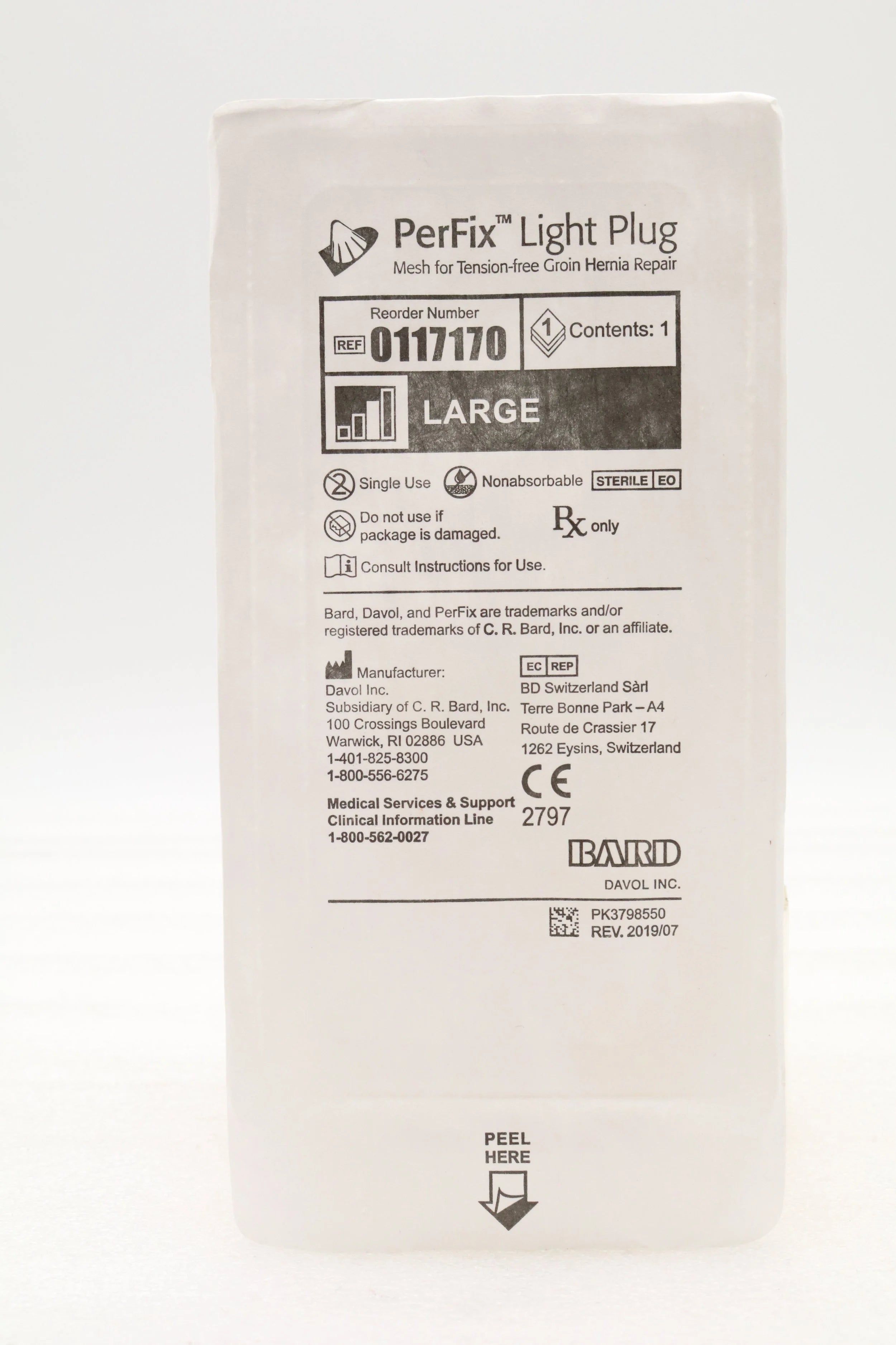 BARD | 0117170 | SHORT DATE | EACHES | DAVOL PERFIX LIGHT PLUG MESH FOR TENSION-FREE GROIN HERNIA REPAIR, LARGE