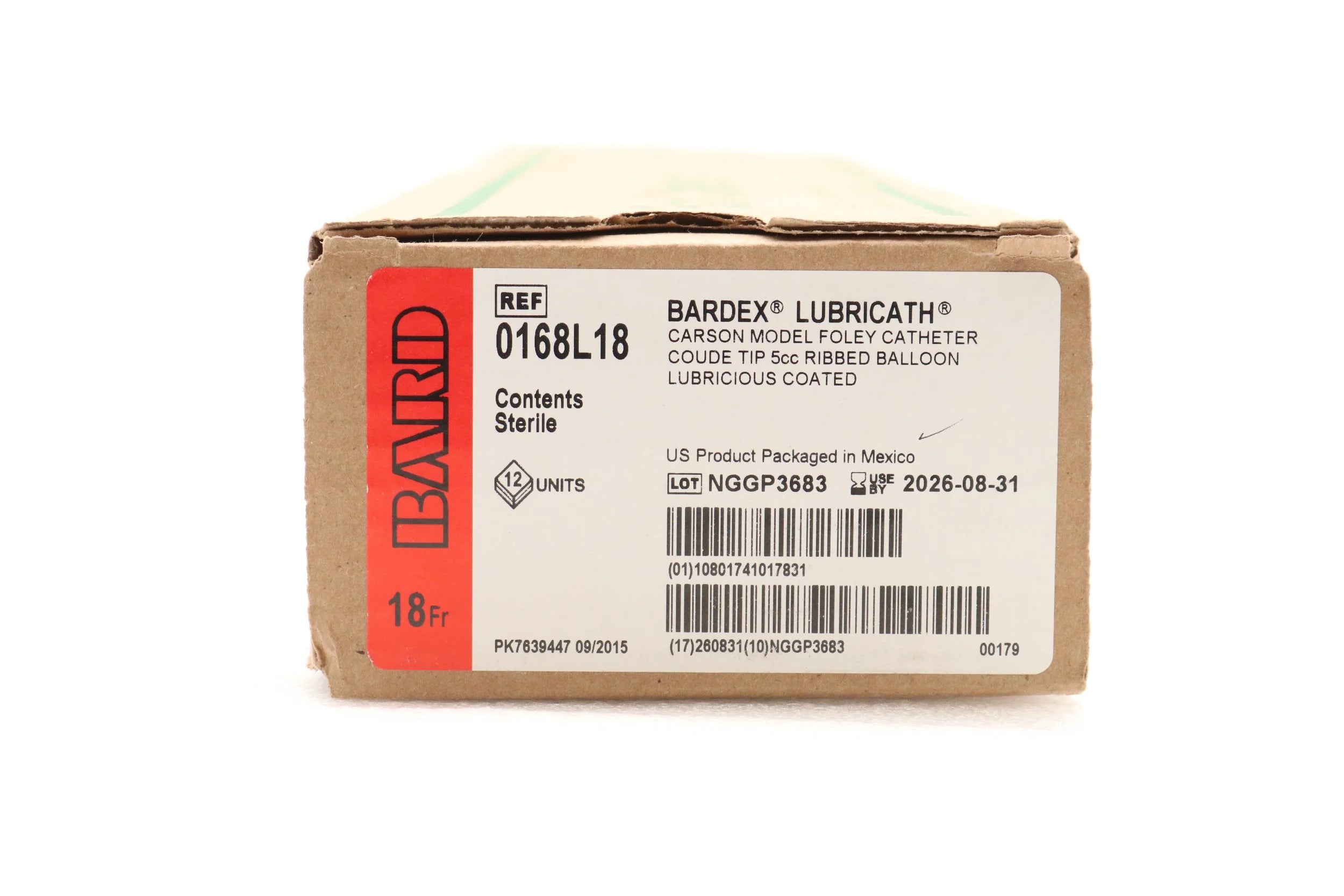 Bard | 0168L18 | Lubricath Foley Catheter 2-Way, Specialty, Carson, Medium Olive Coude Tip, Single Drainage Eye, 5cc/18F