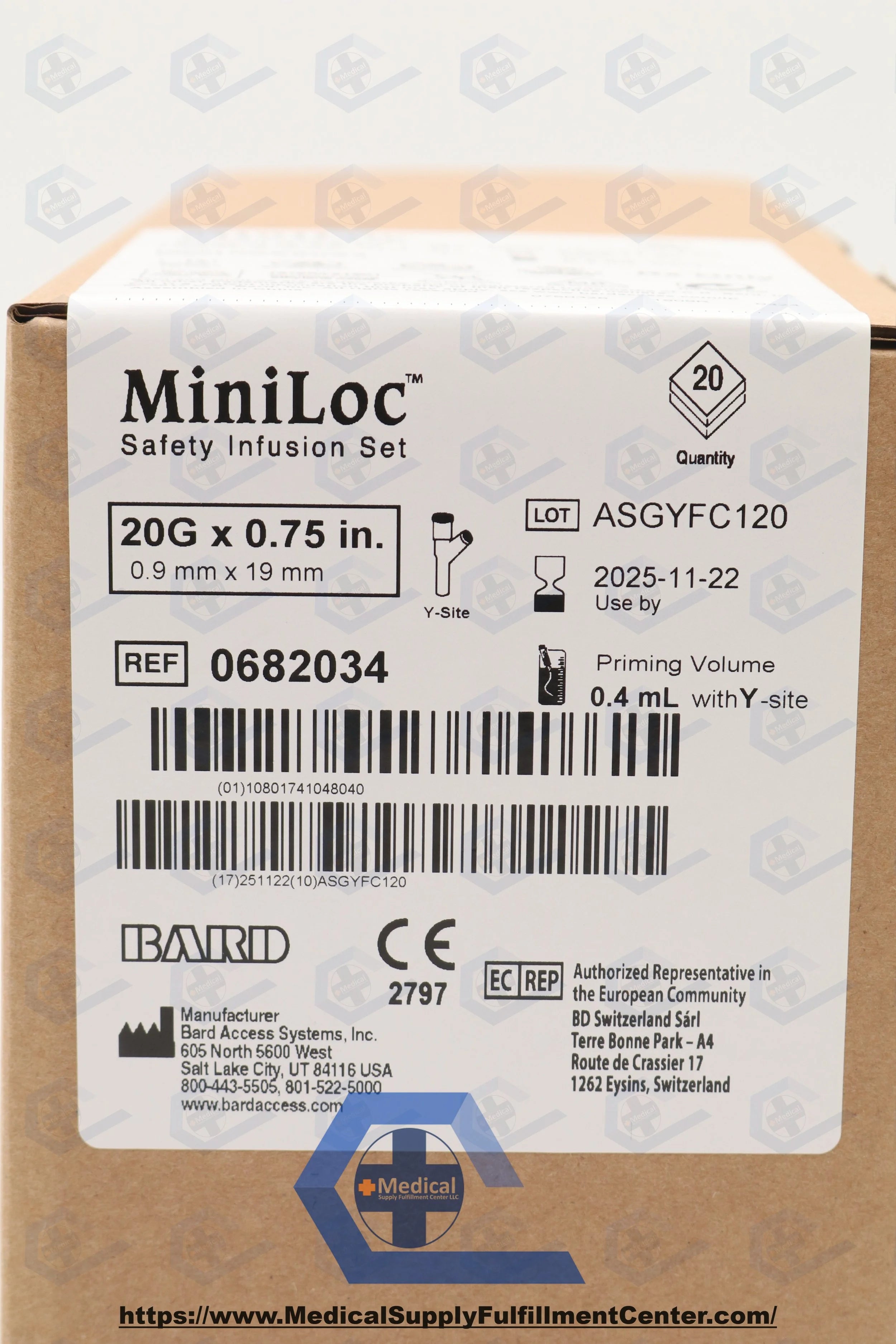 Bard | 0682034 | SHORT DATE | BOX OF 20 | MiniLoc Safety Infusion Sets - MiniLoc Safety Winged Infusion Set, 20G x 0.75"