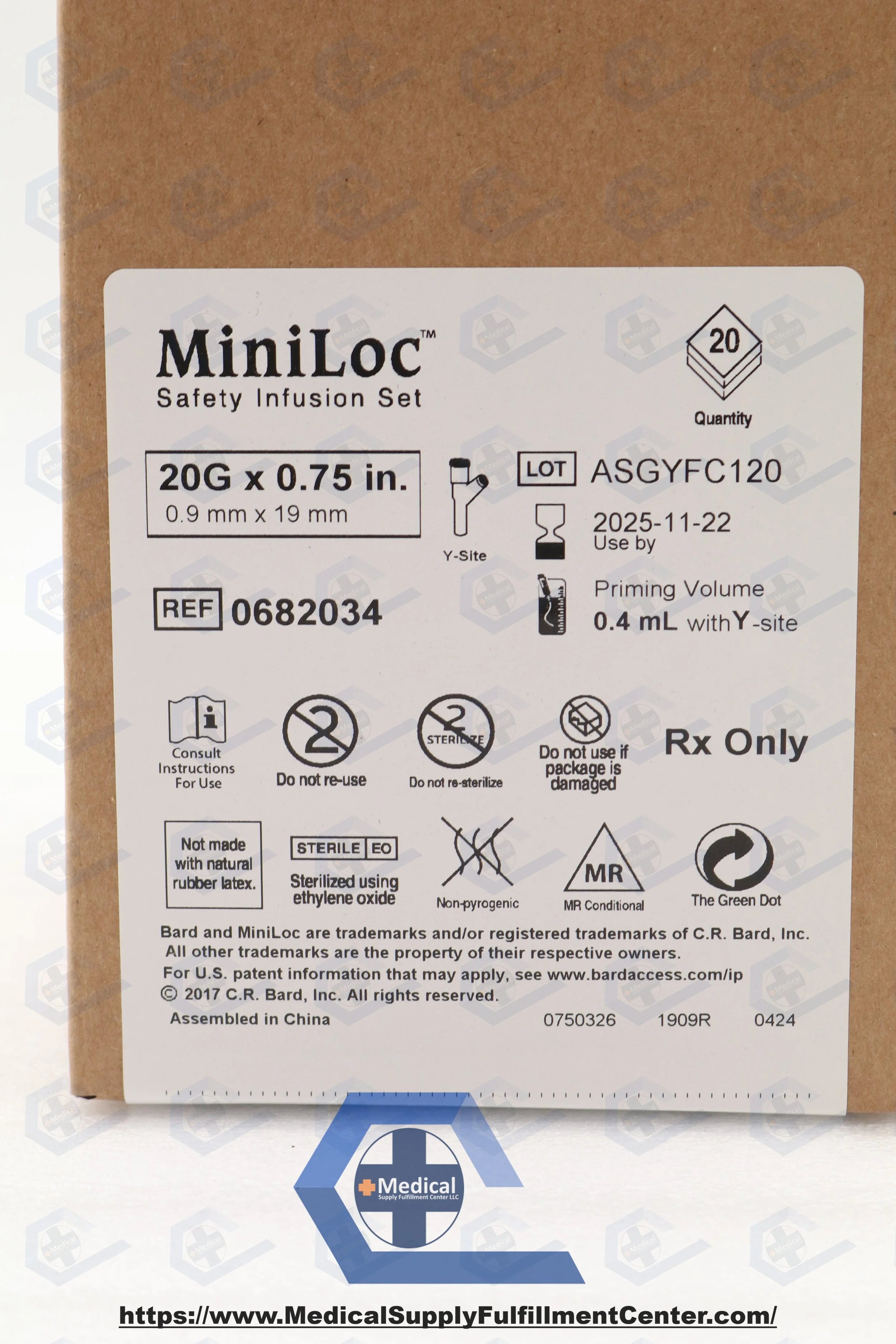 Bard | 0682034 | IN-DATE | BOX OF 20 | MiniLoc Safety Infusion Sets - MiniLoc Safety Winged Infusion Set, 20G x 0.75"