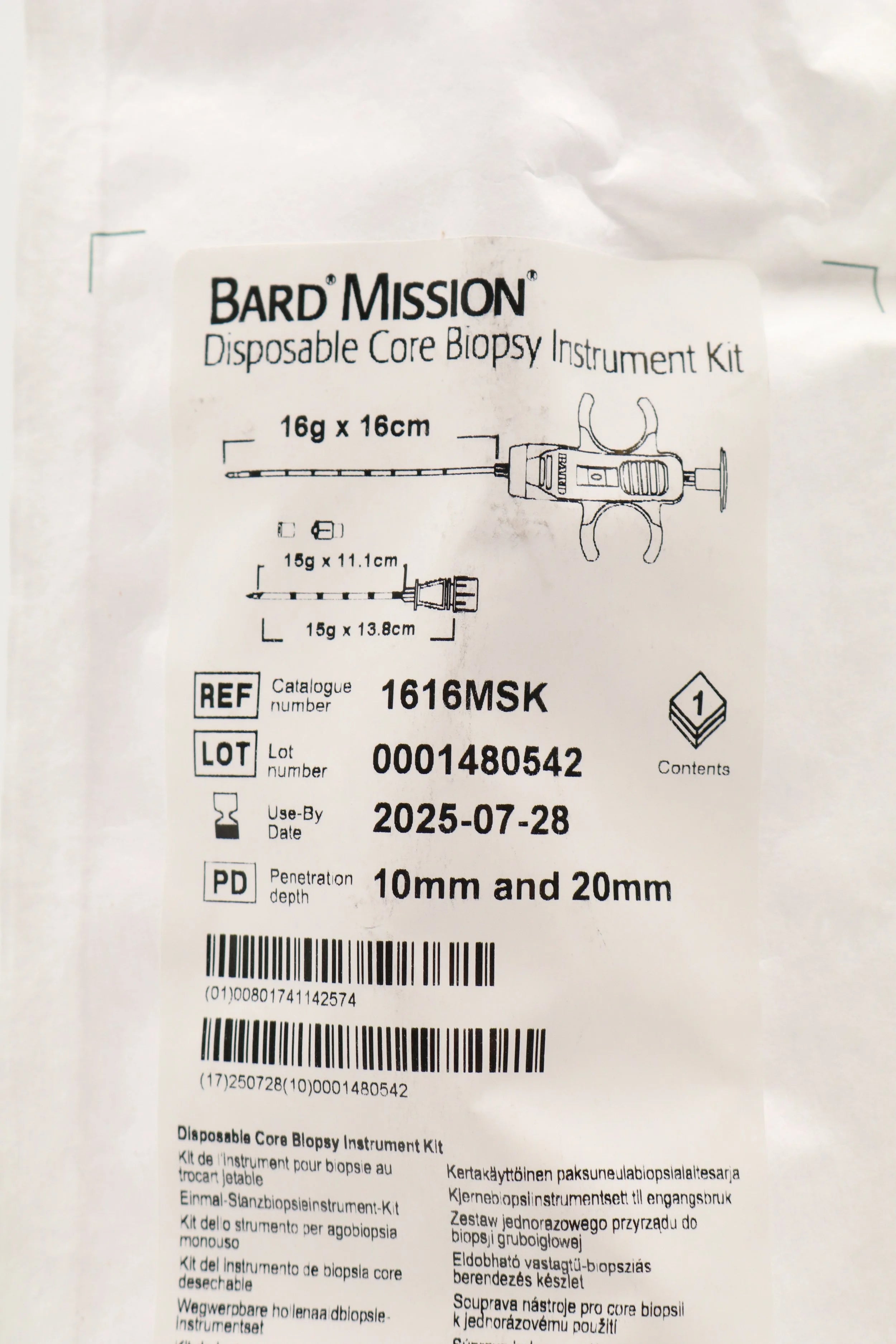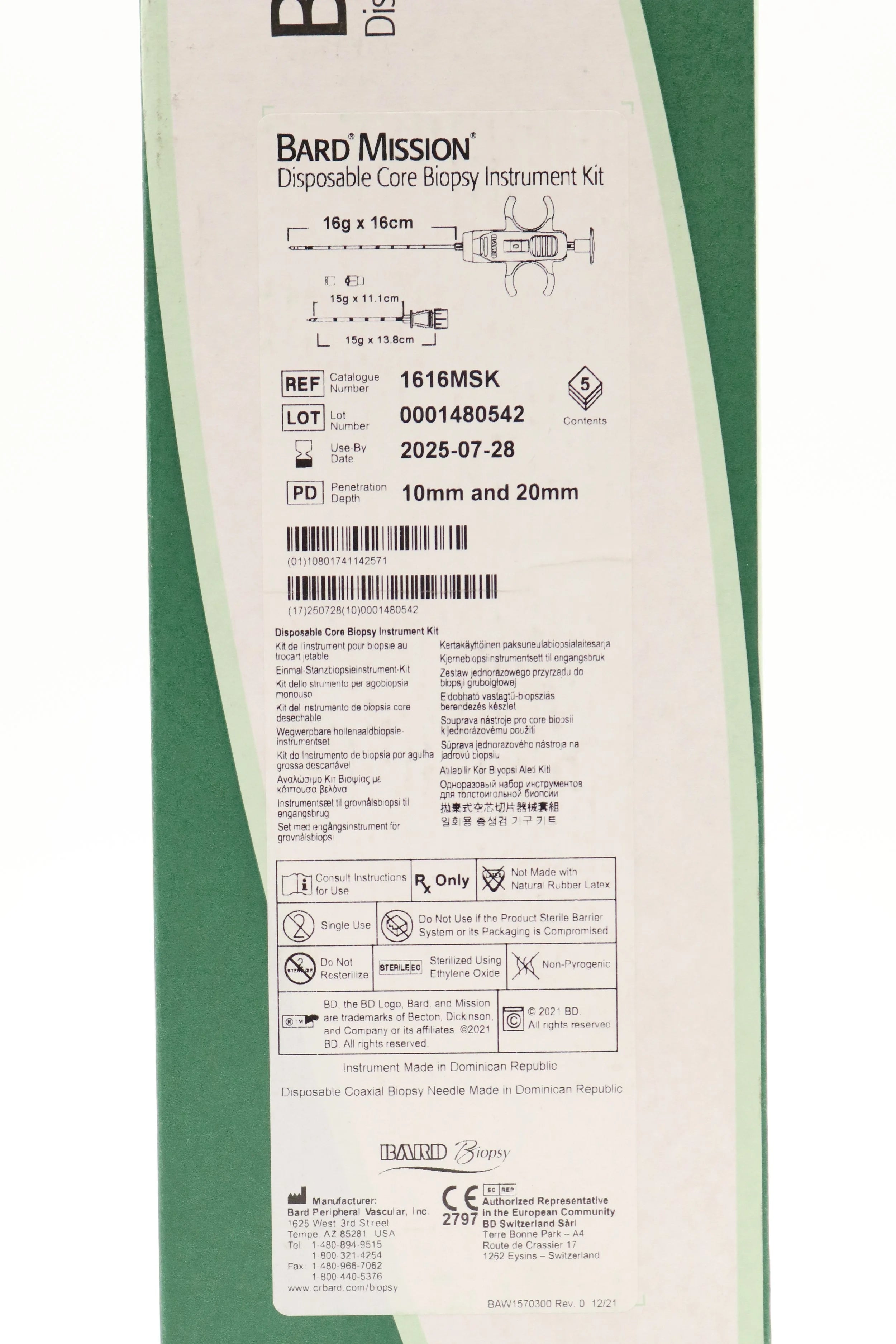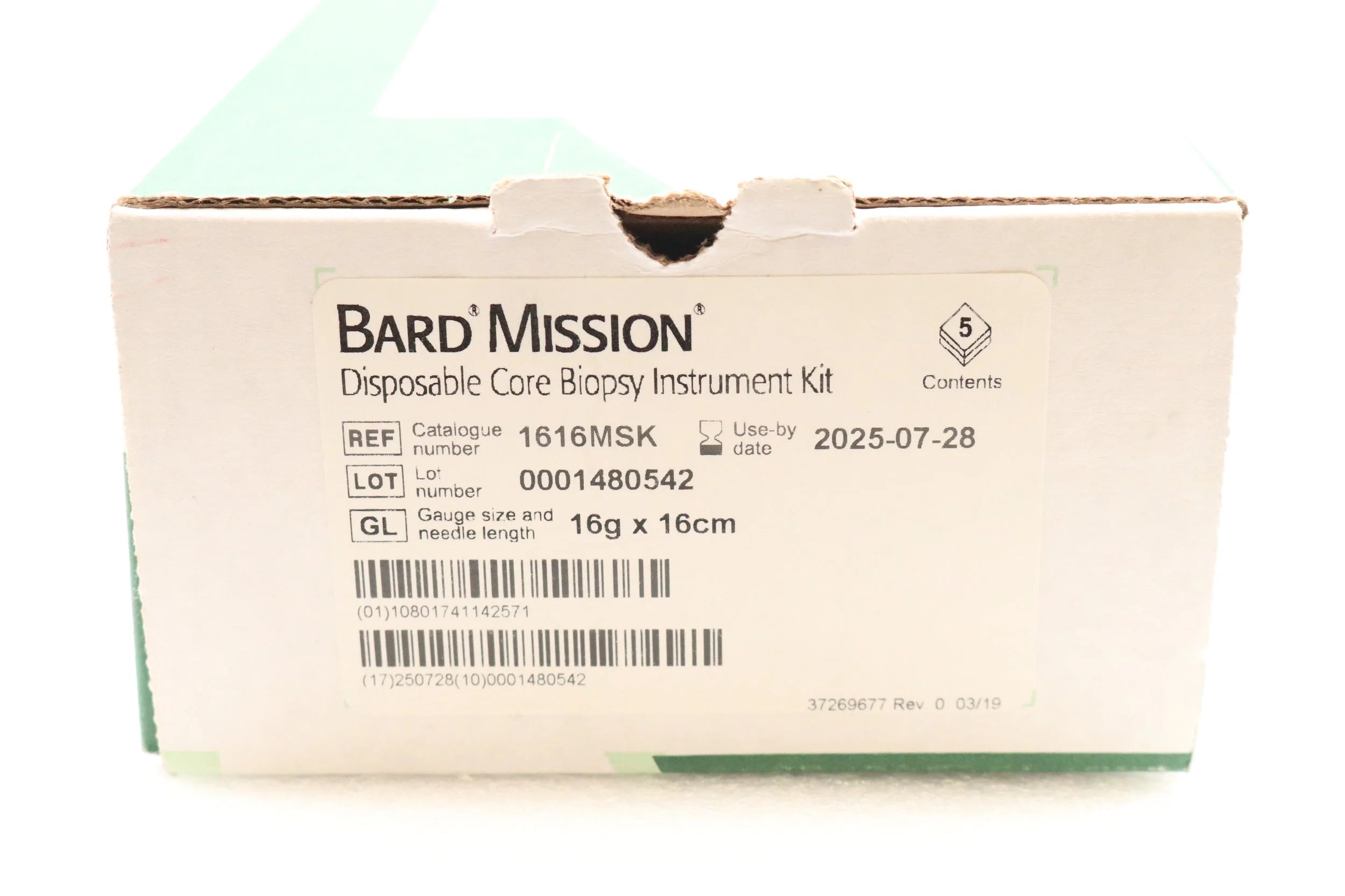 Bard | 1616MSK | SHORT DATE | Box of 5 | Mission Disposable Core Biopsy Kit 16G x 16cm
