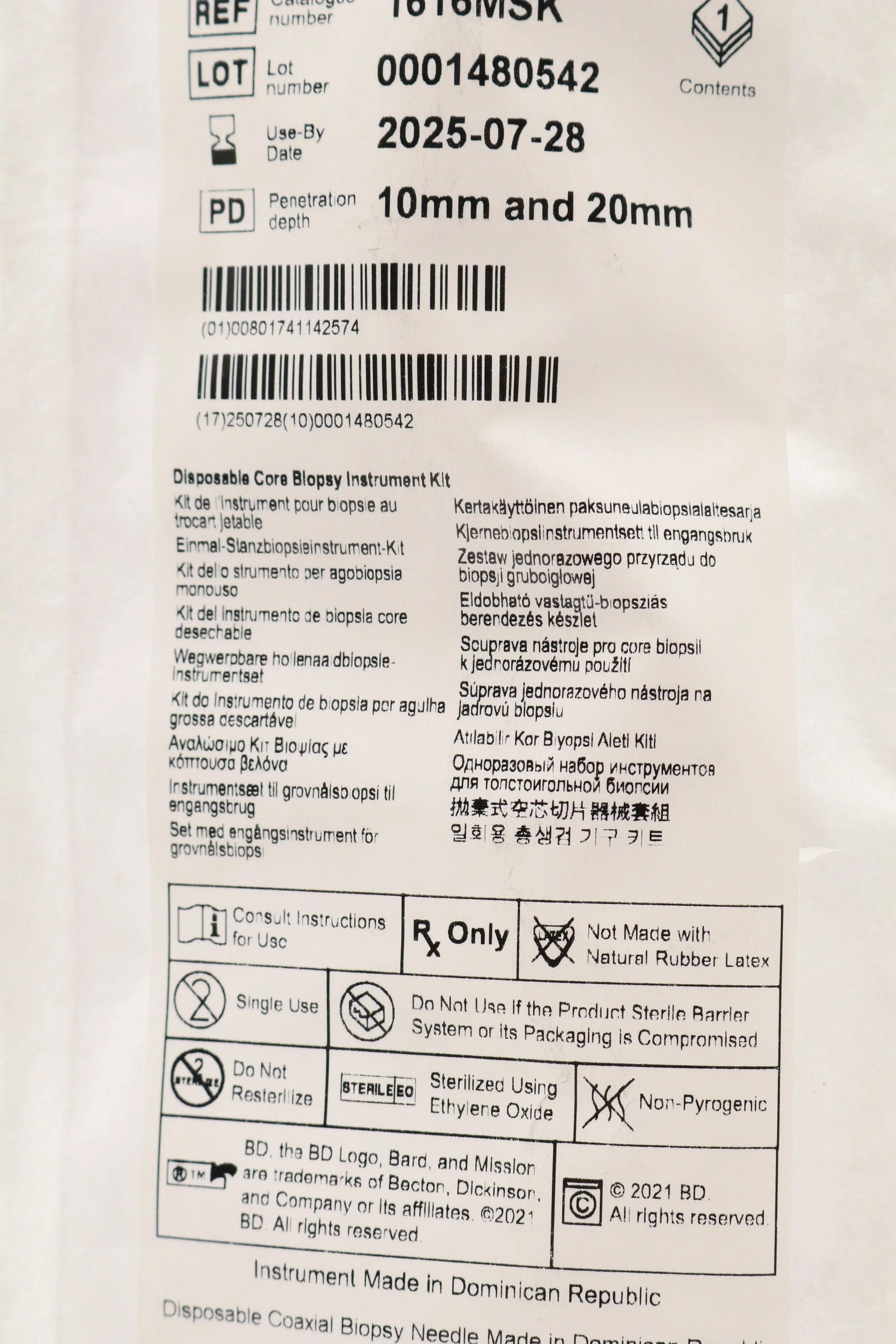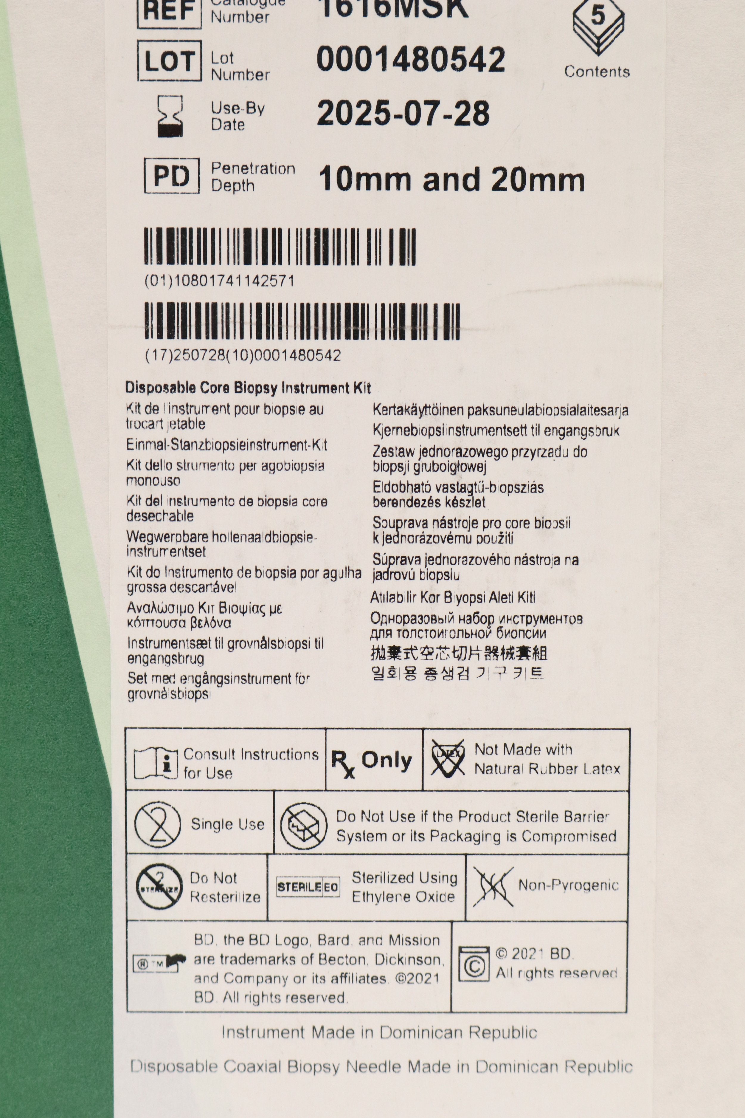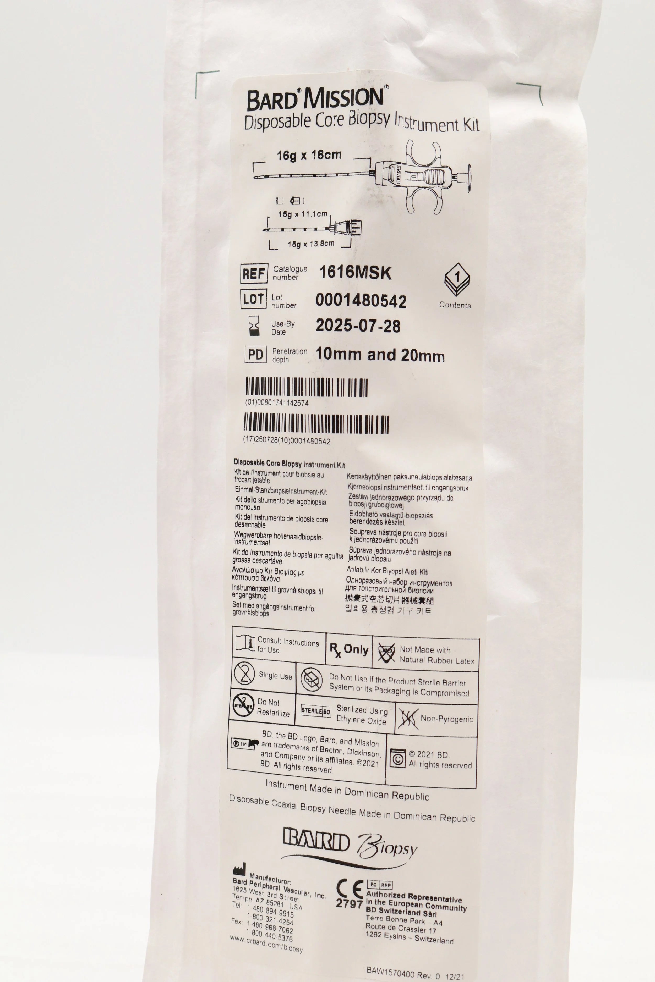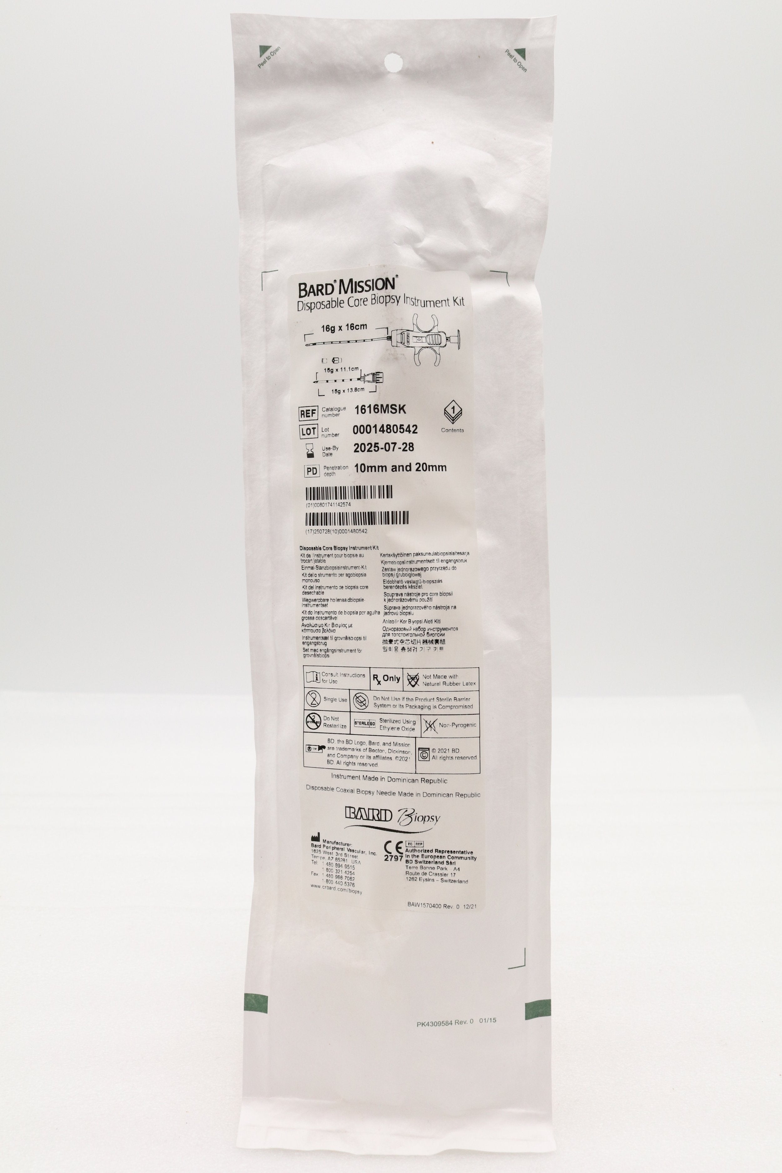 Bard | 1616MSK | SHORT DATE | Box of 5 | Mission Disposable Core Biopsy Kit 16G x 16cm