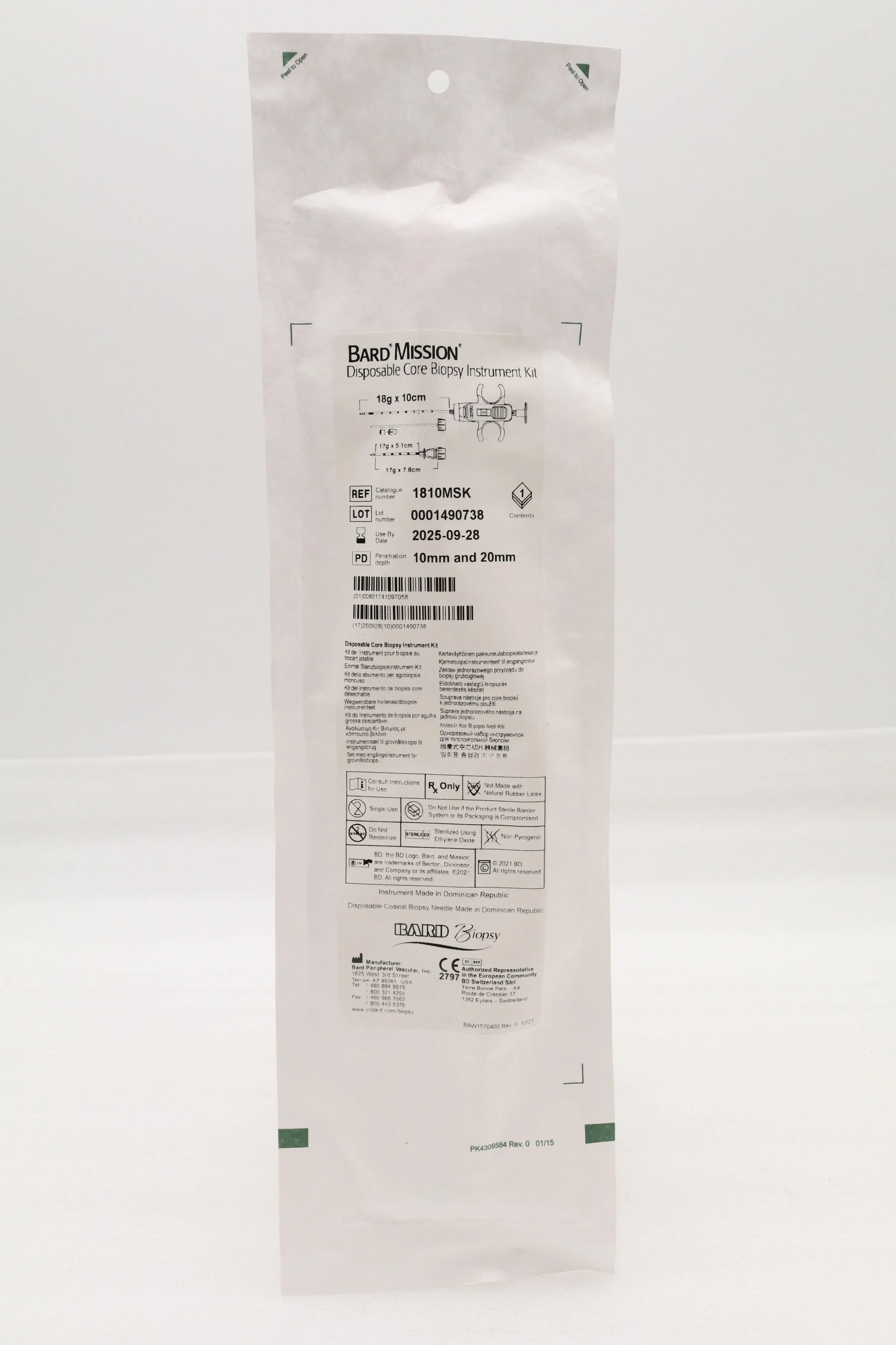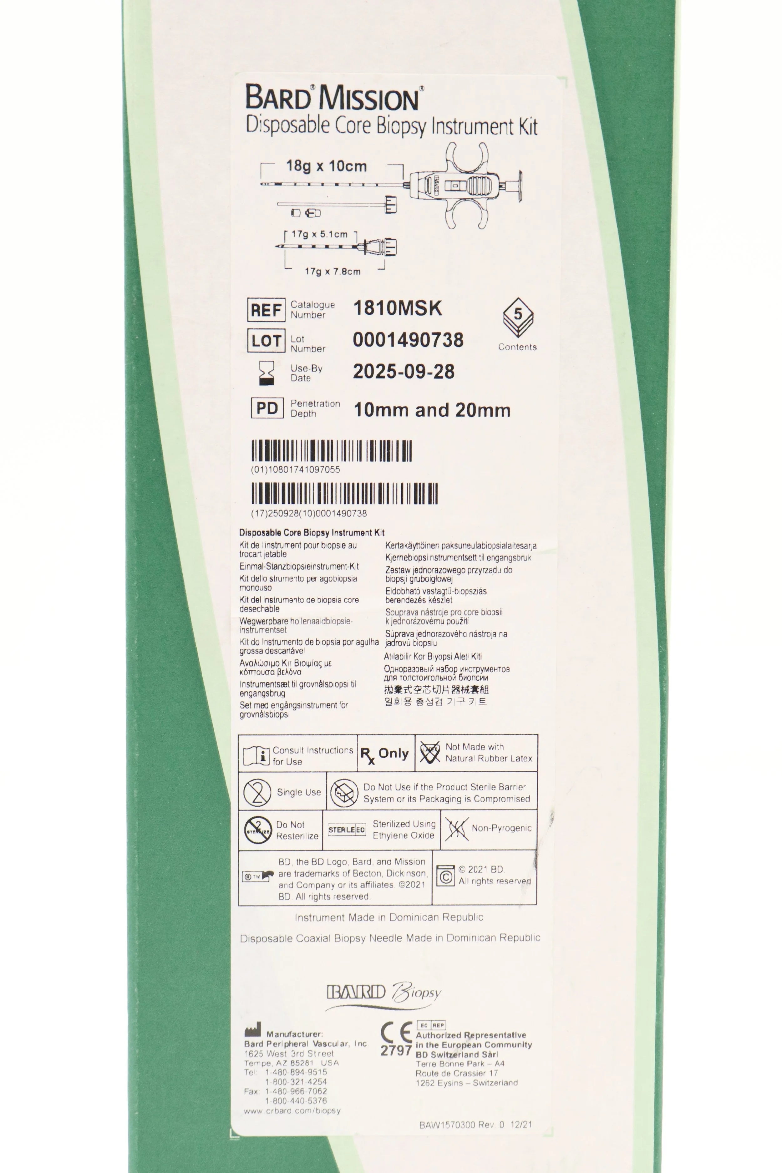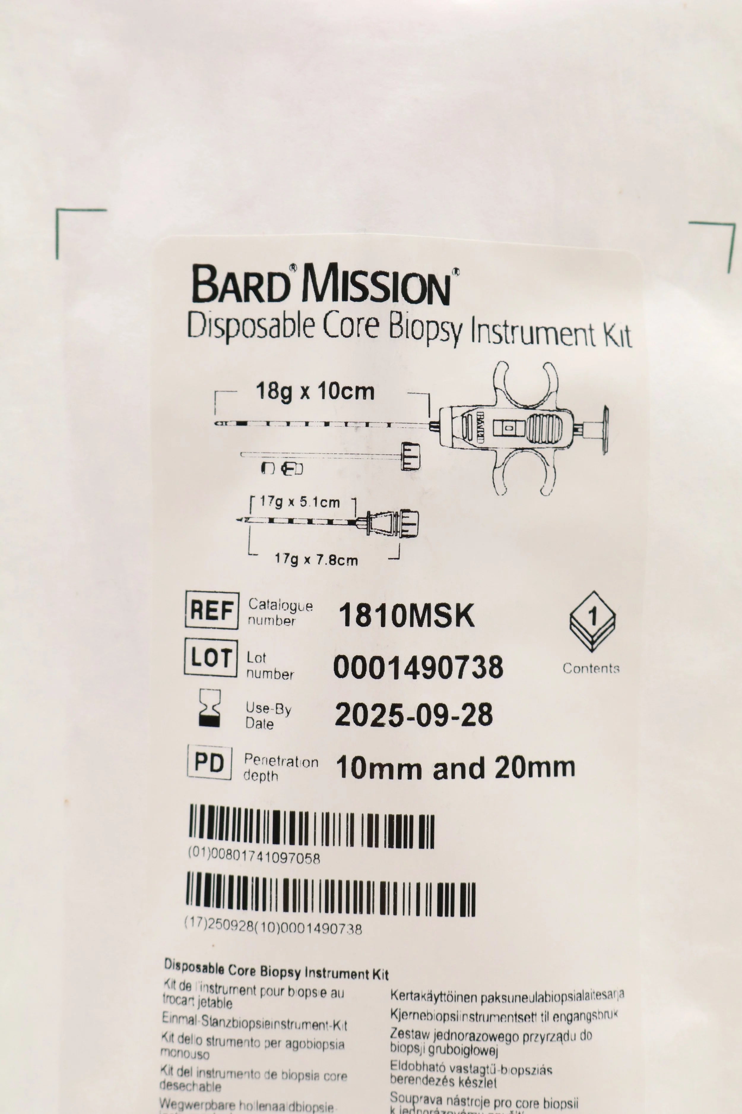Bard | 1810MSK | SHORT DATE | BOX OF 5 | Mission Disposable Core Biopsy Kit 18G x 10cm