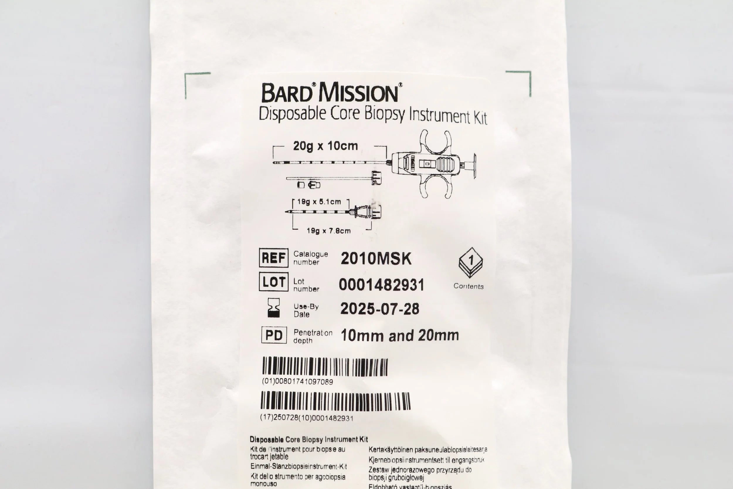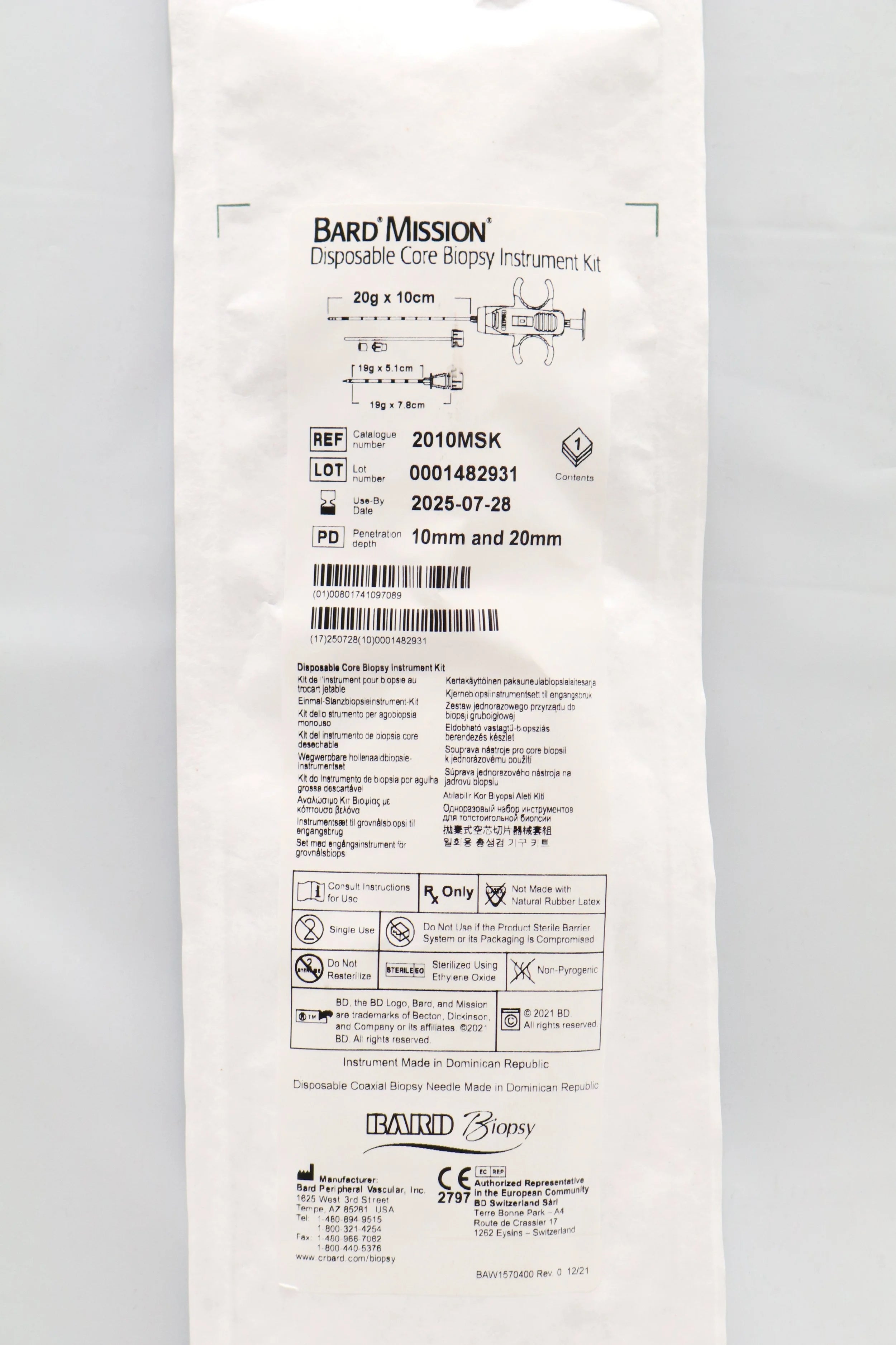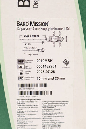 BARD | 2010MSK | SHORT DATE | BOX OF 5 | Mission Disposable Core Biopsy Instrument Kit 20G x 10 cm Length