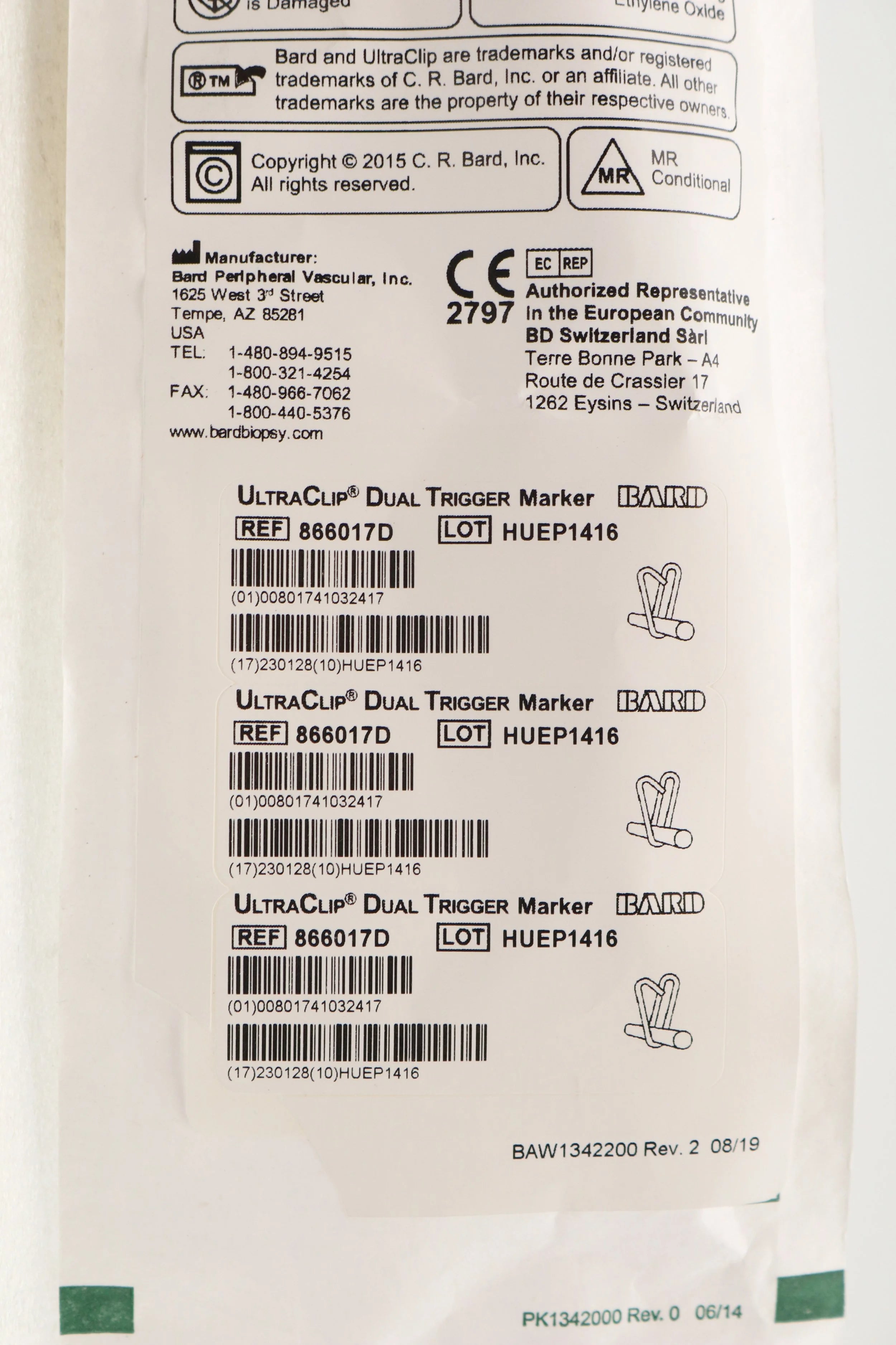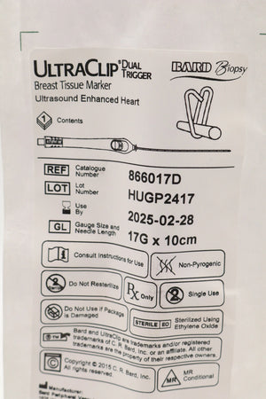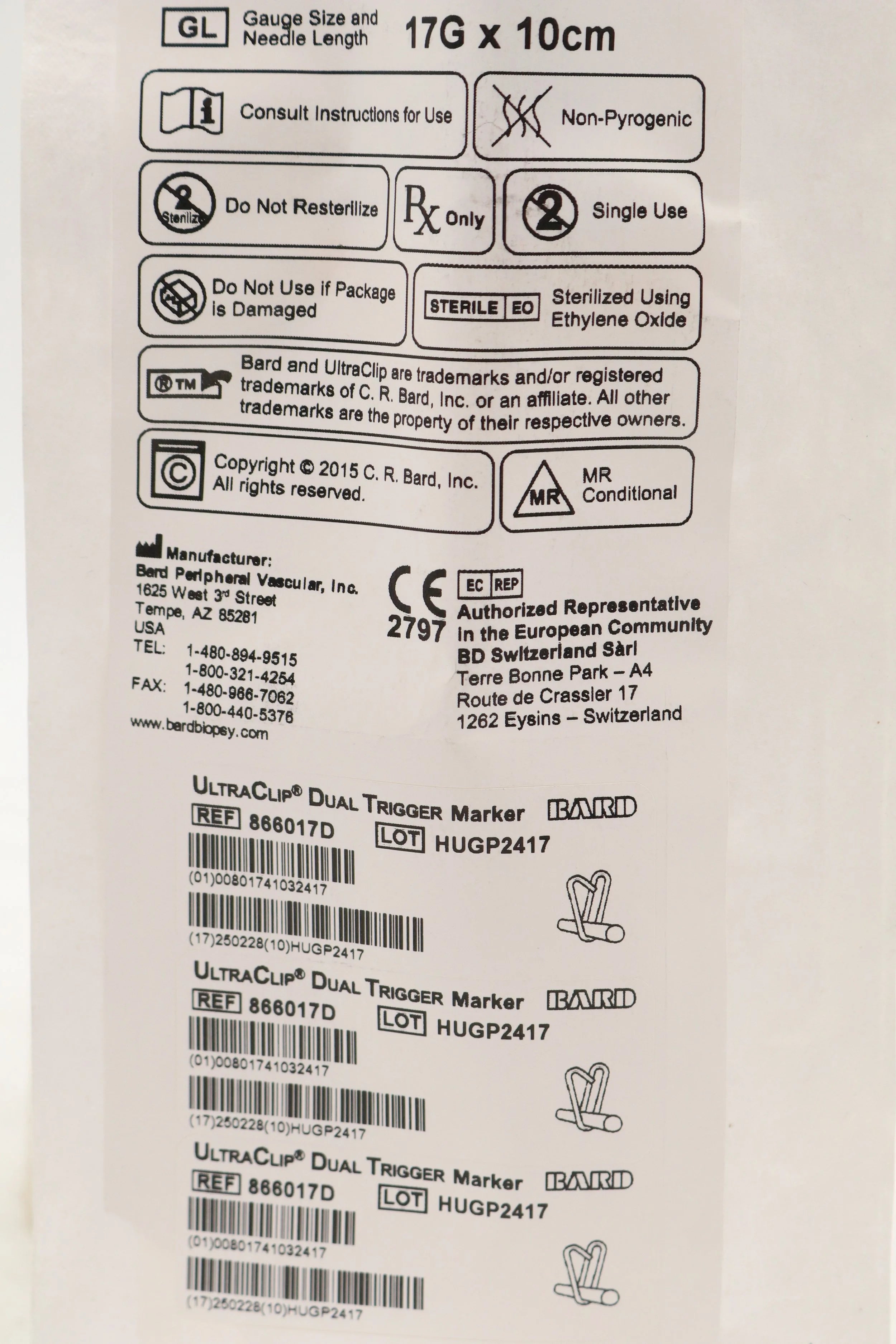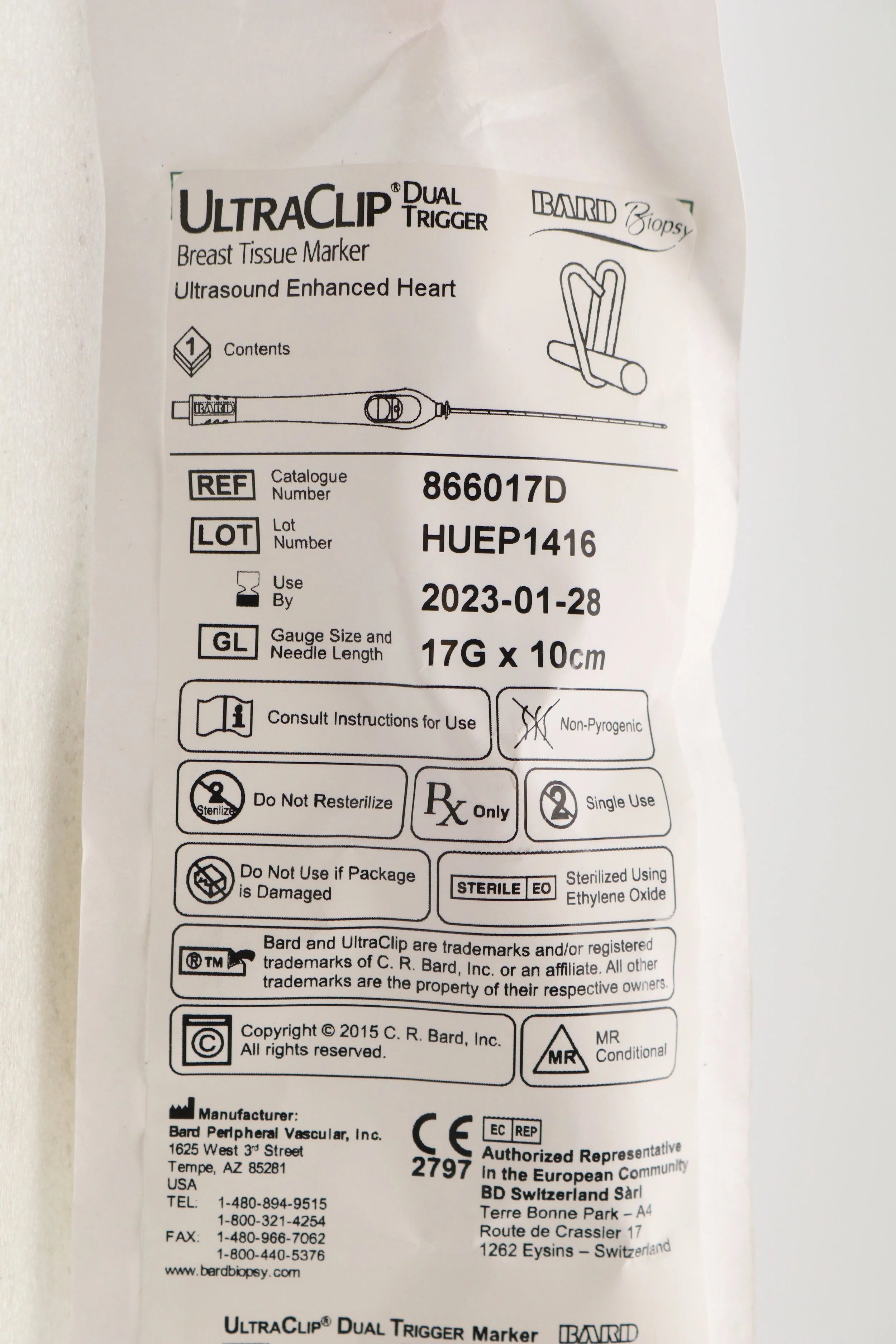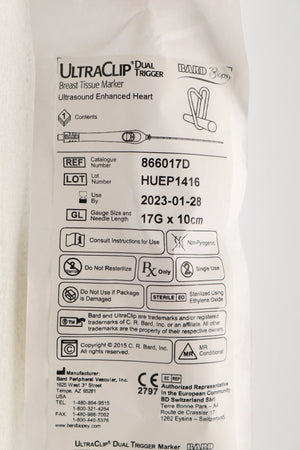 BARD | 866017D | SHORT DATE | EACHES | UltraClip Dual Trigger Breast Tissue Markers - Breast Tissue Marker, 17G x 10 cm, Titanium