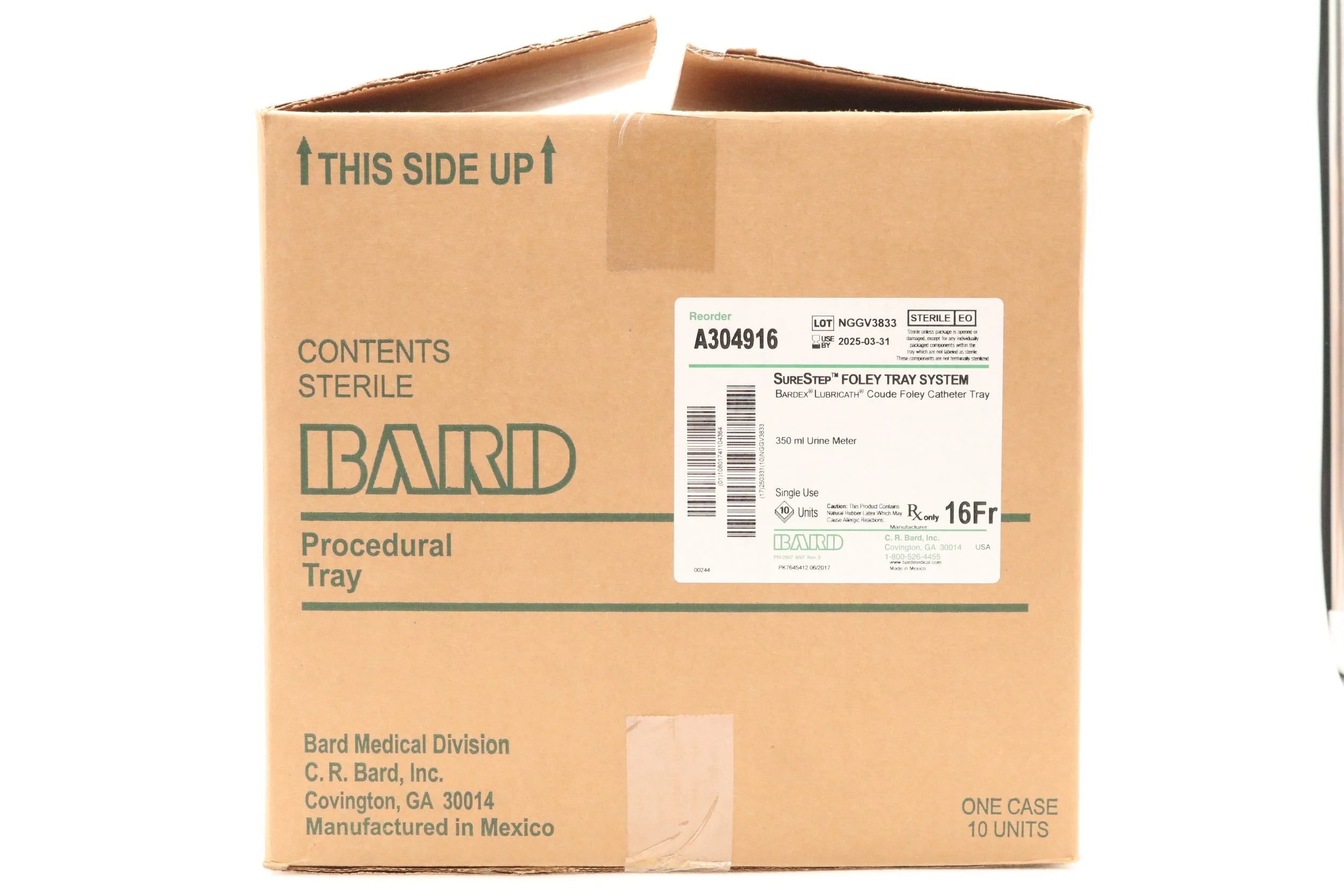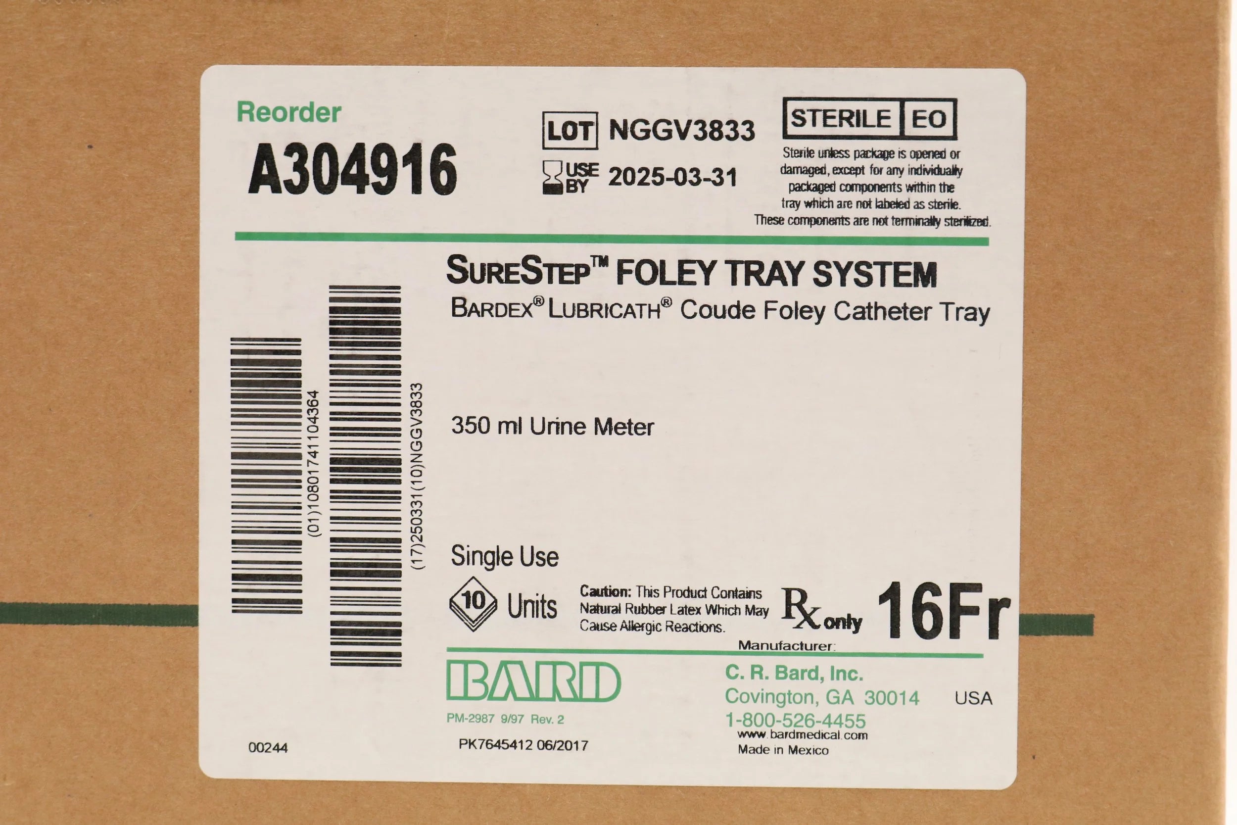 Bard | A304916 | SHORT DATE | CASE OF 10 | SureStep Bardex Lubricath Coude Foley Catheter Tray 16F