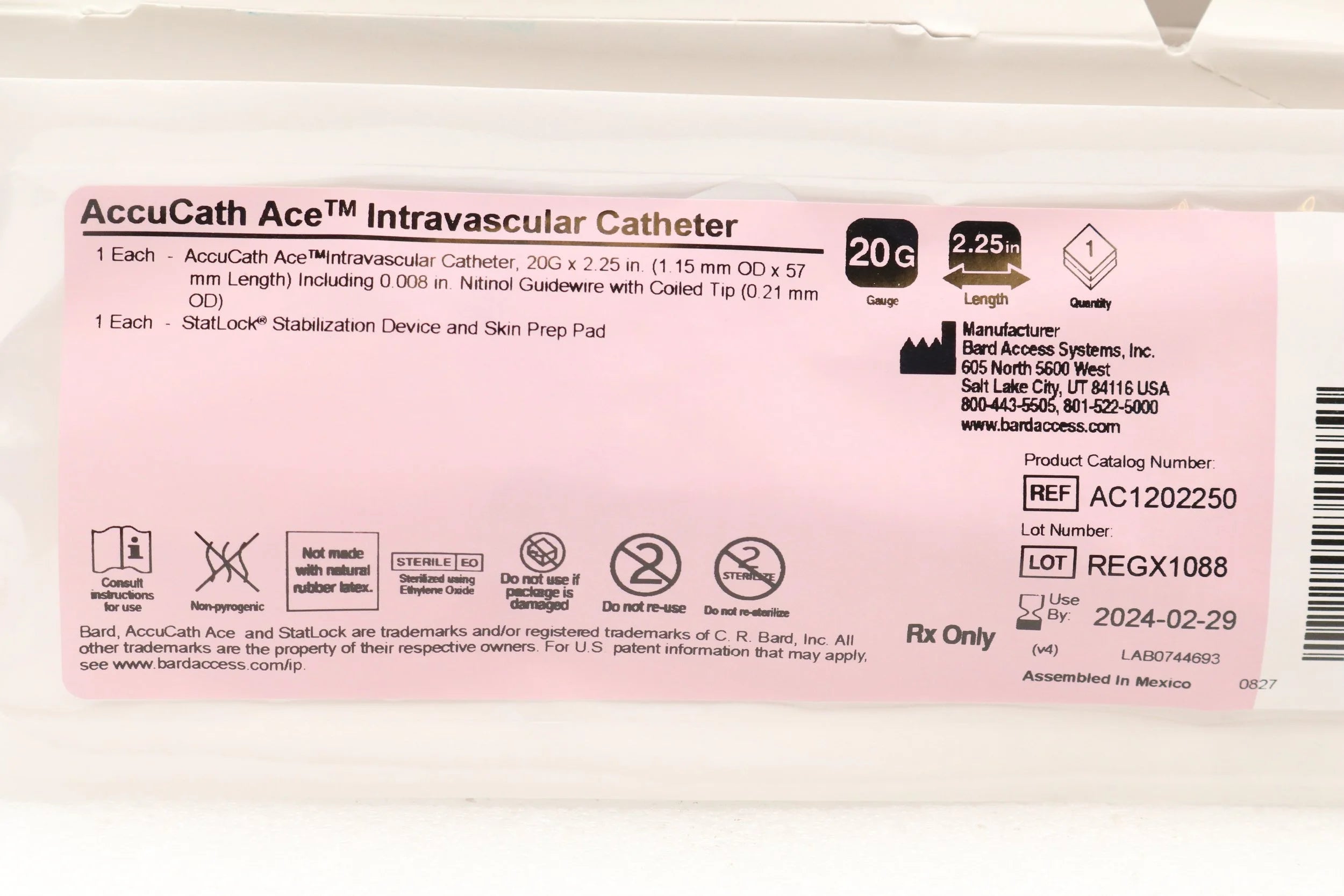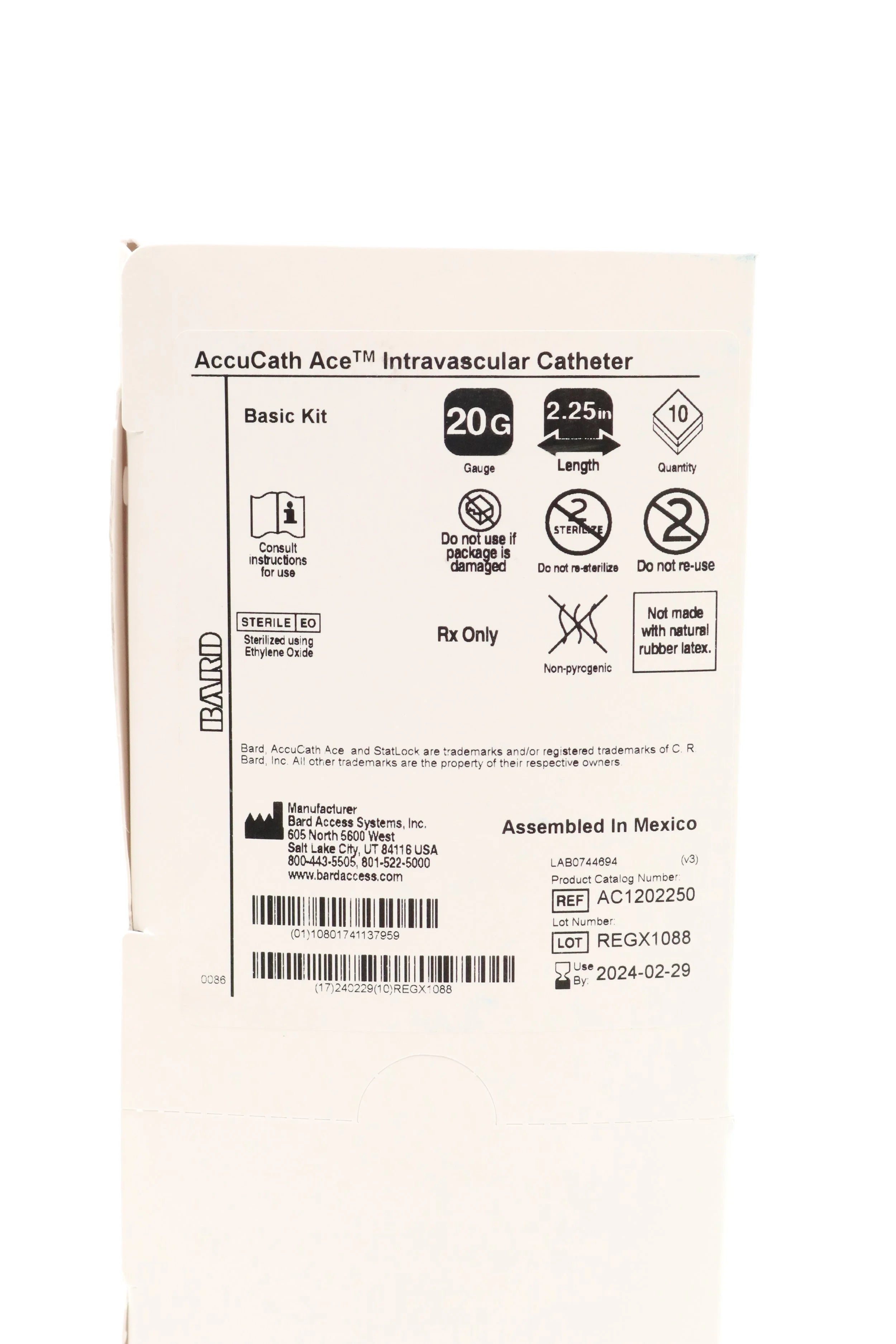 Bard | AC1202250 | EXPIRED | BOX OF 10 | AccuCath Ace Intravascular Catheter, Basic 22G x 1.25"
